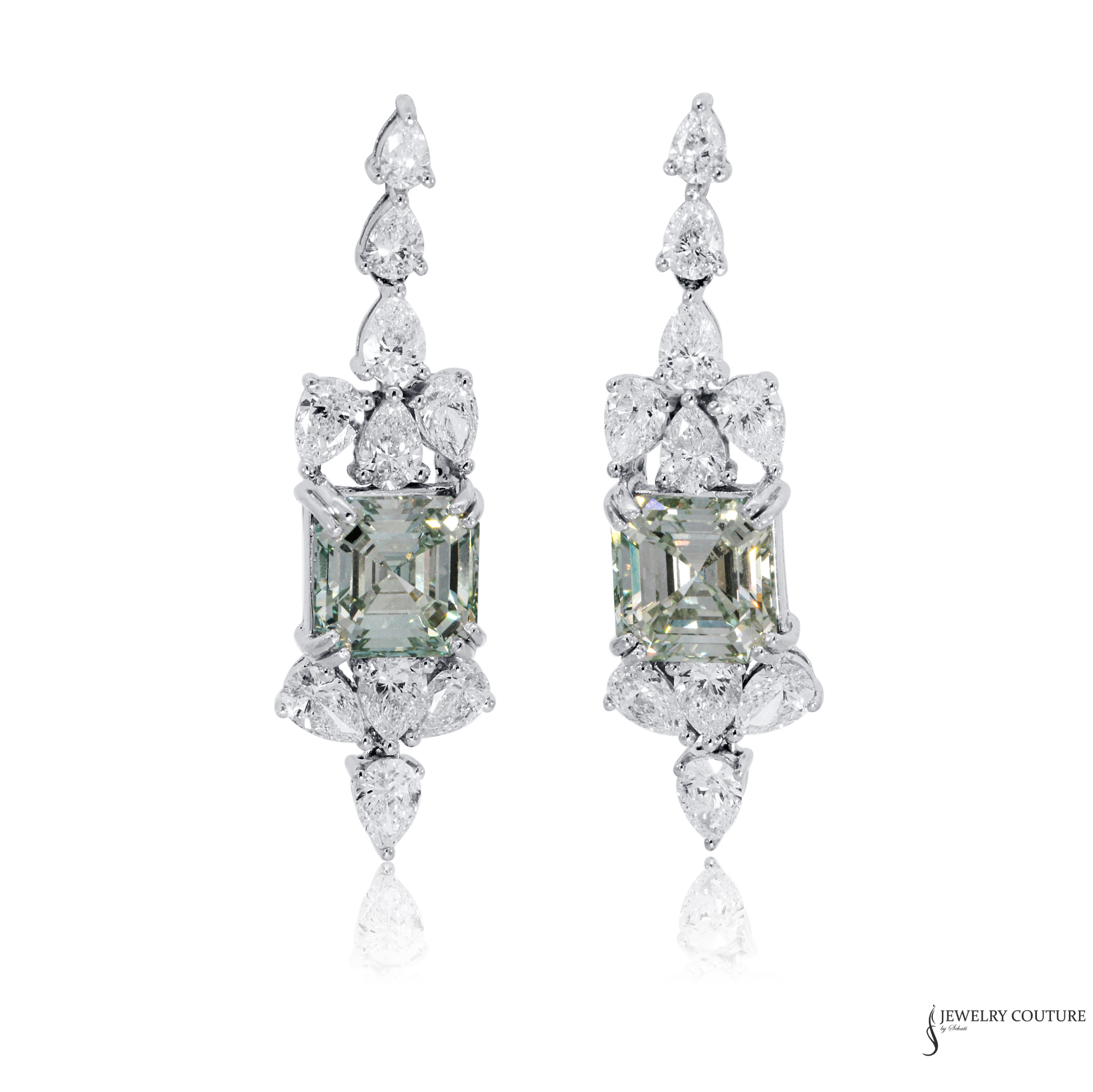 Custom Asscher-Cut Light Green Diamond Drop Earrings in 14K White Gold | Natural Diamonds