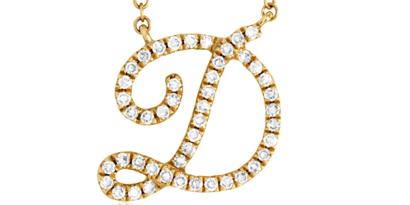 Initial “D” Pendant Necklace 14K White Gold Diamond | 17.4” Chain