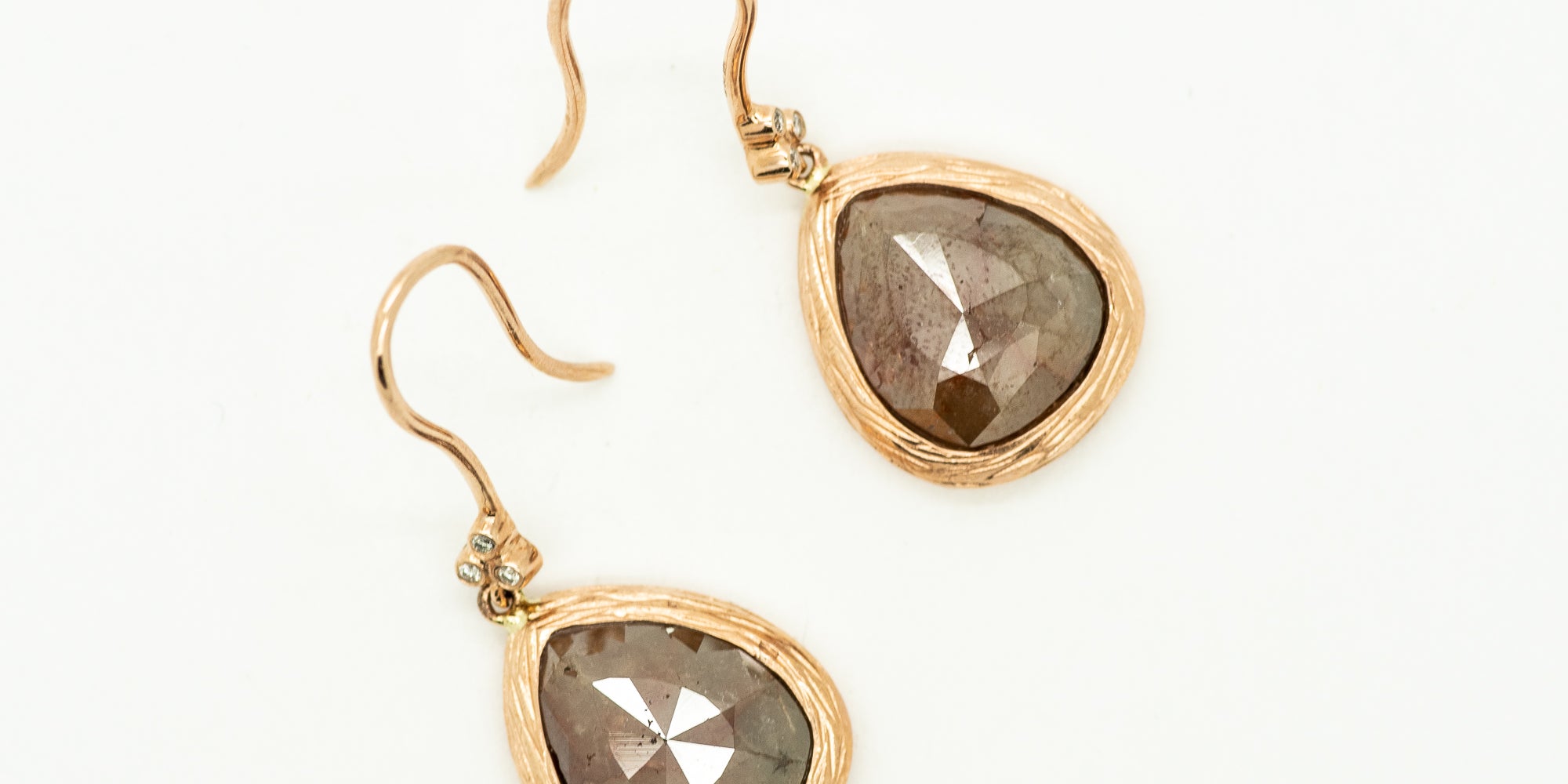 14K Yellow Gold Raw Diamond Drop Earrings Natural Rough Diamonds with Accent Diamonds