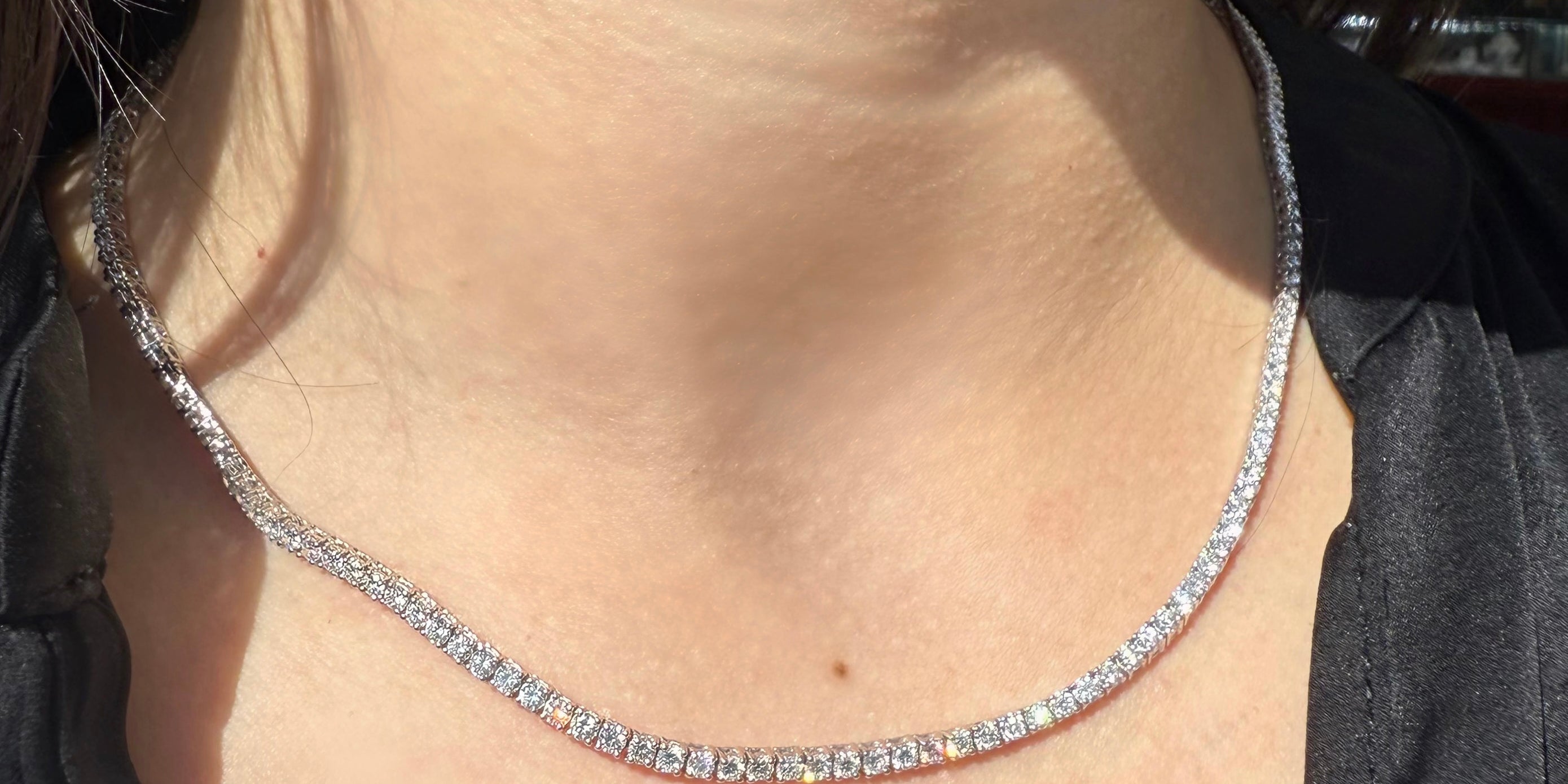 Tennis Necklace 14KT White Gold Lab Grown Diamond – 13.72 Carat Total, 16-Inch Length