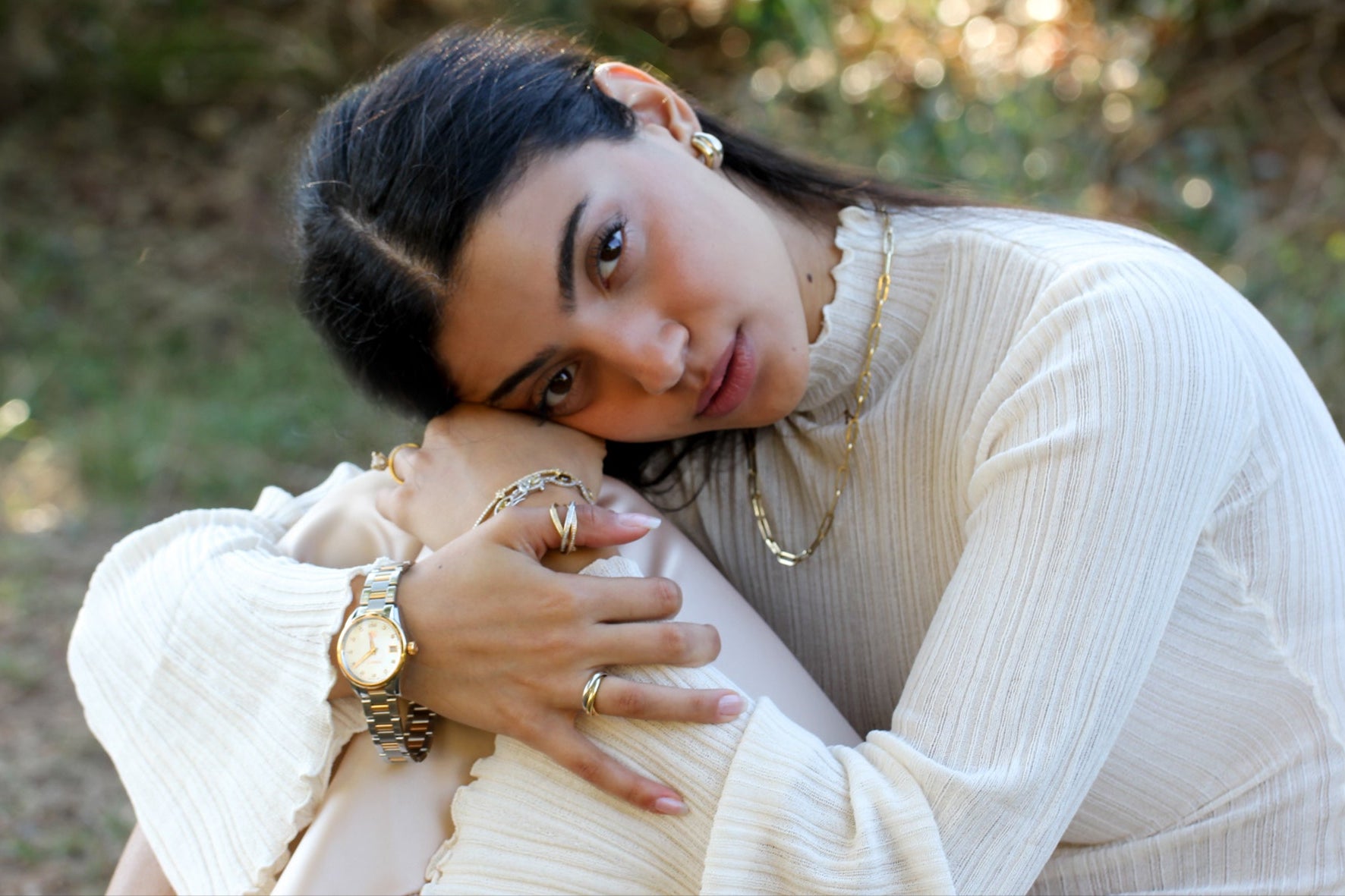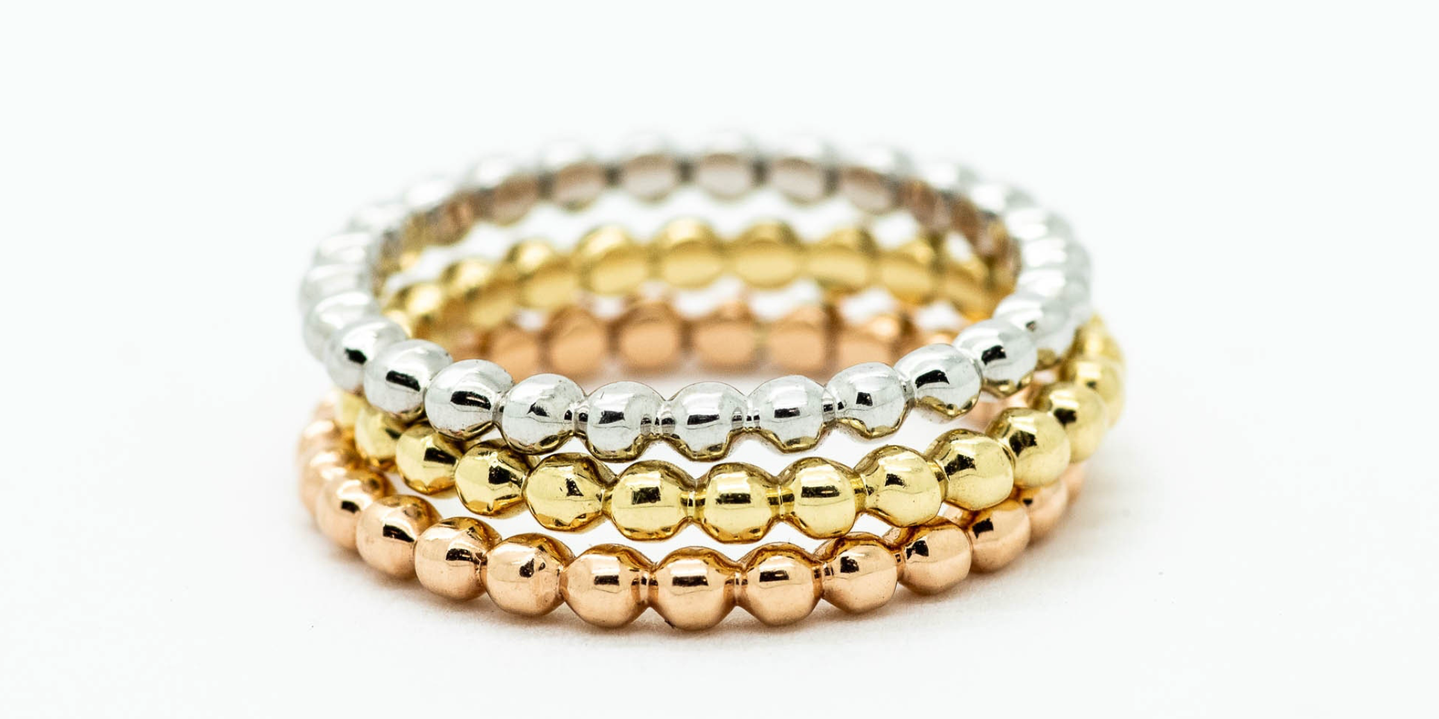 Yellow, White & Rose Gold Stacking Band 14K Tri-Color Gold Beaded Ring