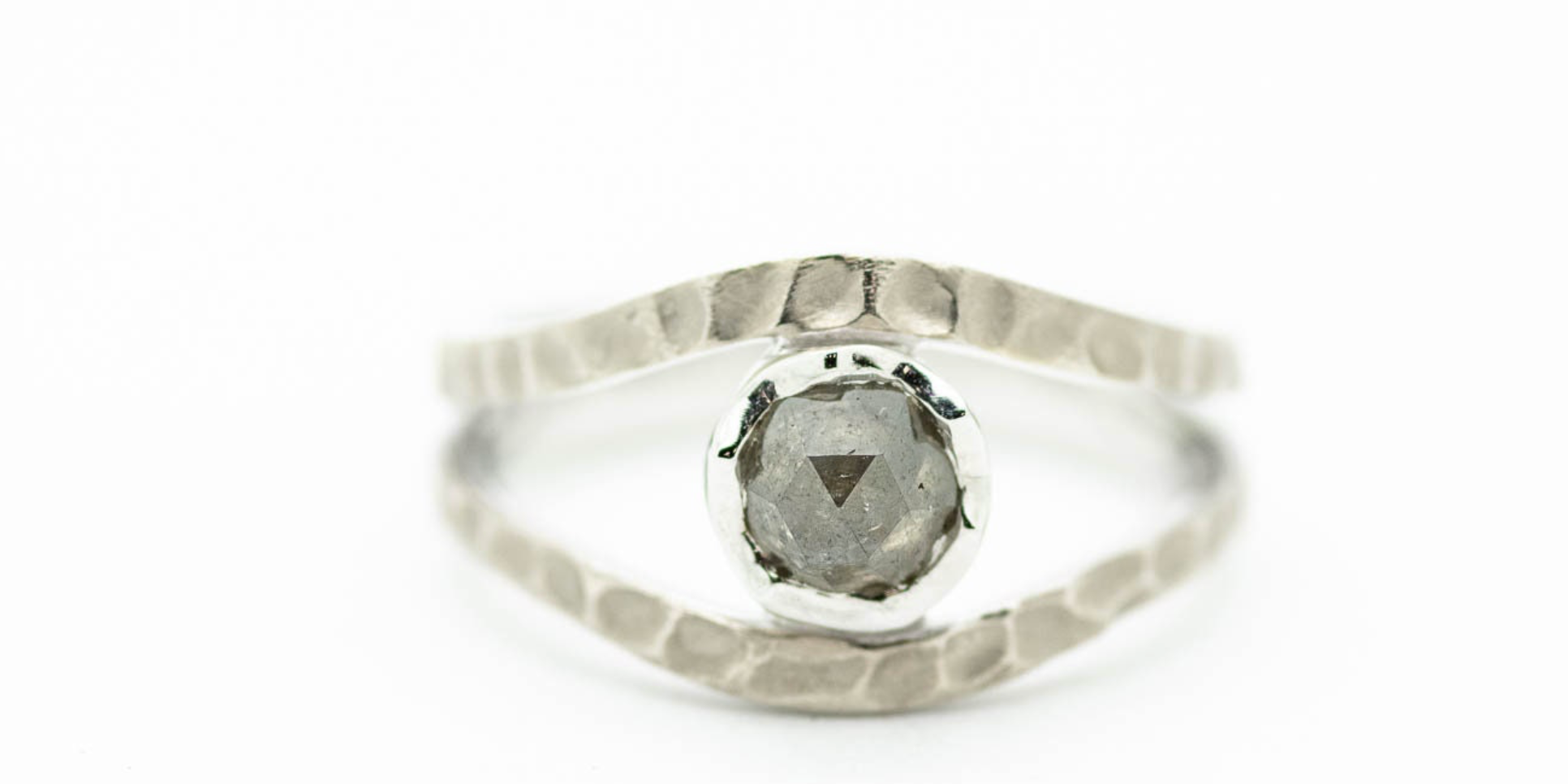 14K White Gold Raw Diamond Hammered Shank Ring – Unique Organic Design| Handmade Natural Diamond Jewelry