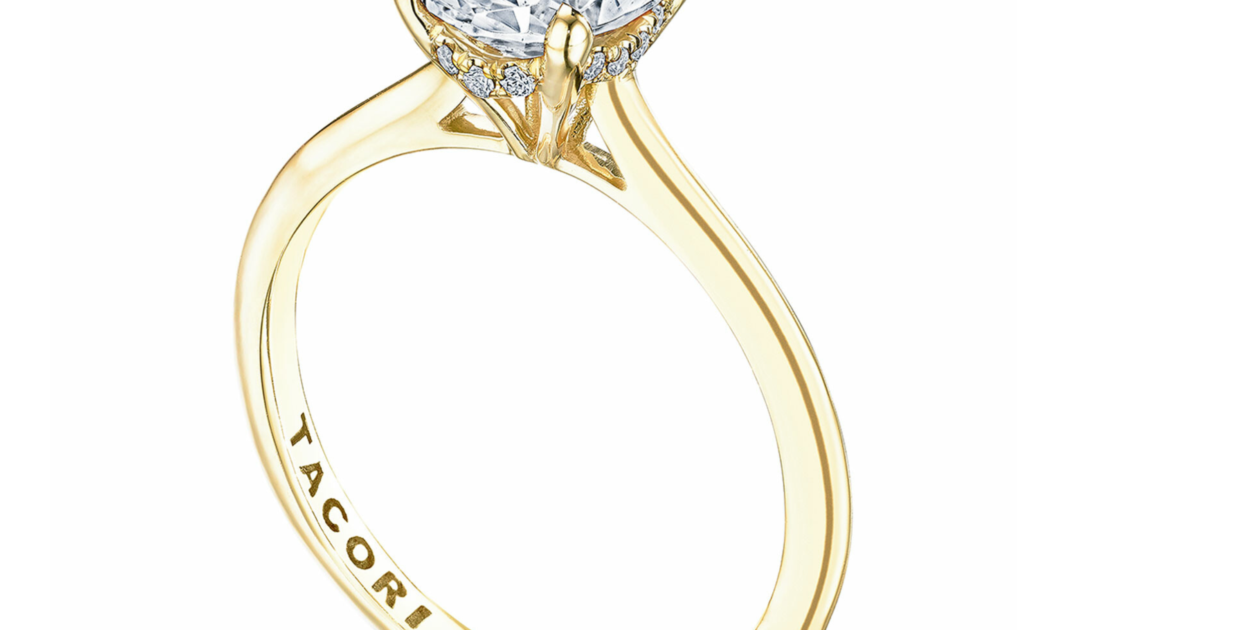 Diamond Solitaire Ring with Pavé Band 14K Yellow Gold