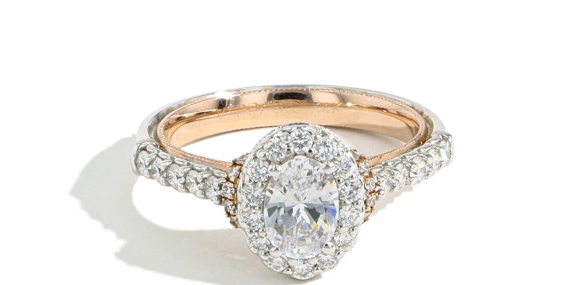 14K Two-Tone DecoAge Oval Diamond Halo Ring – Natural Oval Diamond, Round Diamond Halo, Size 6¼