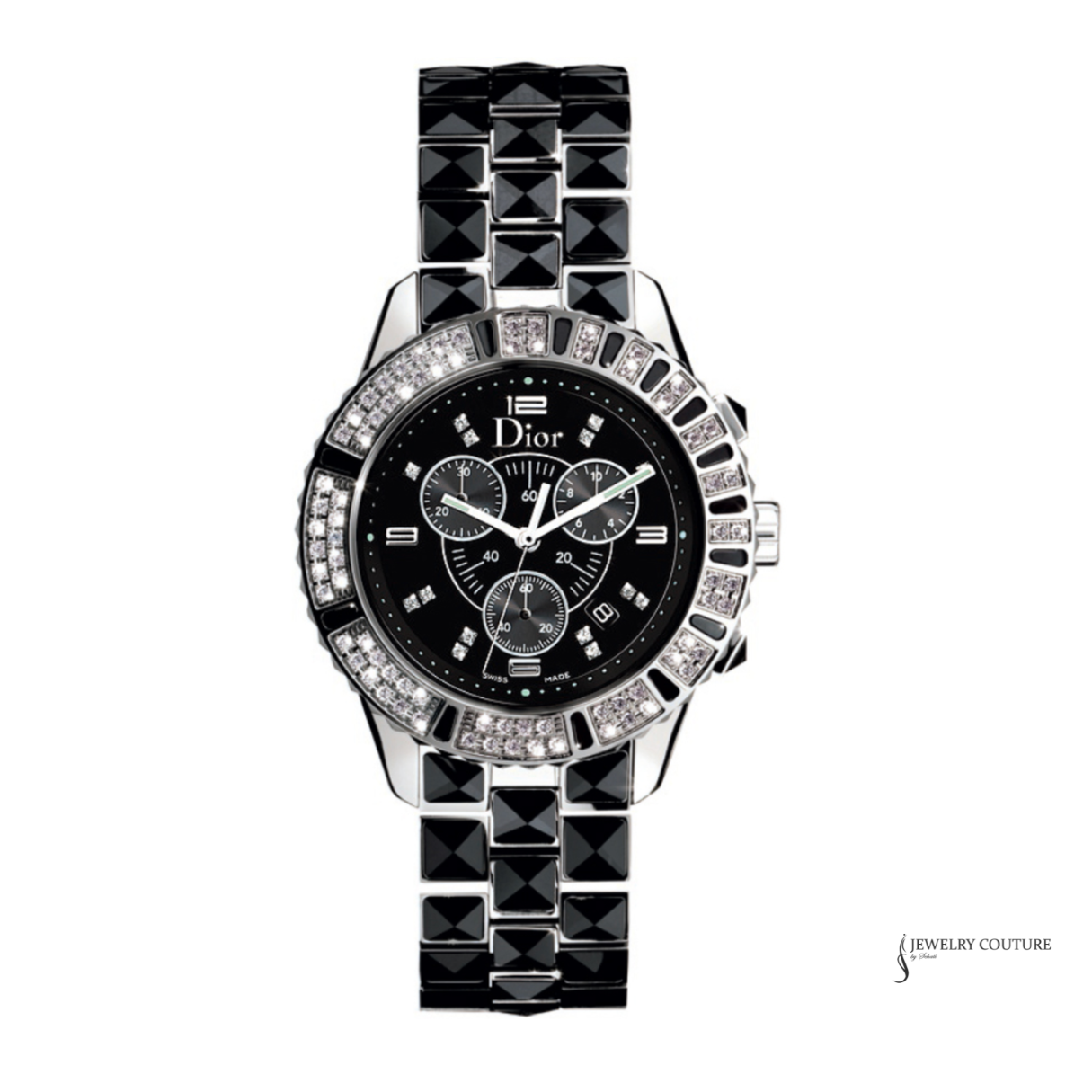 Dior - Stainless Steel with Black Sapphires and Crystal Bezel Chronograph Watch Authentic