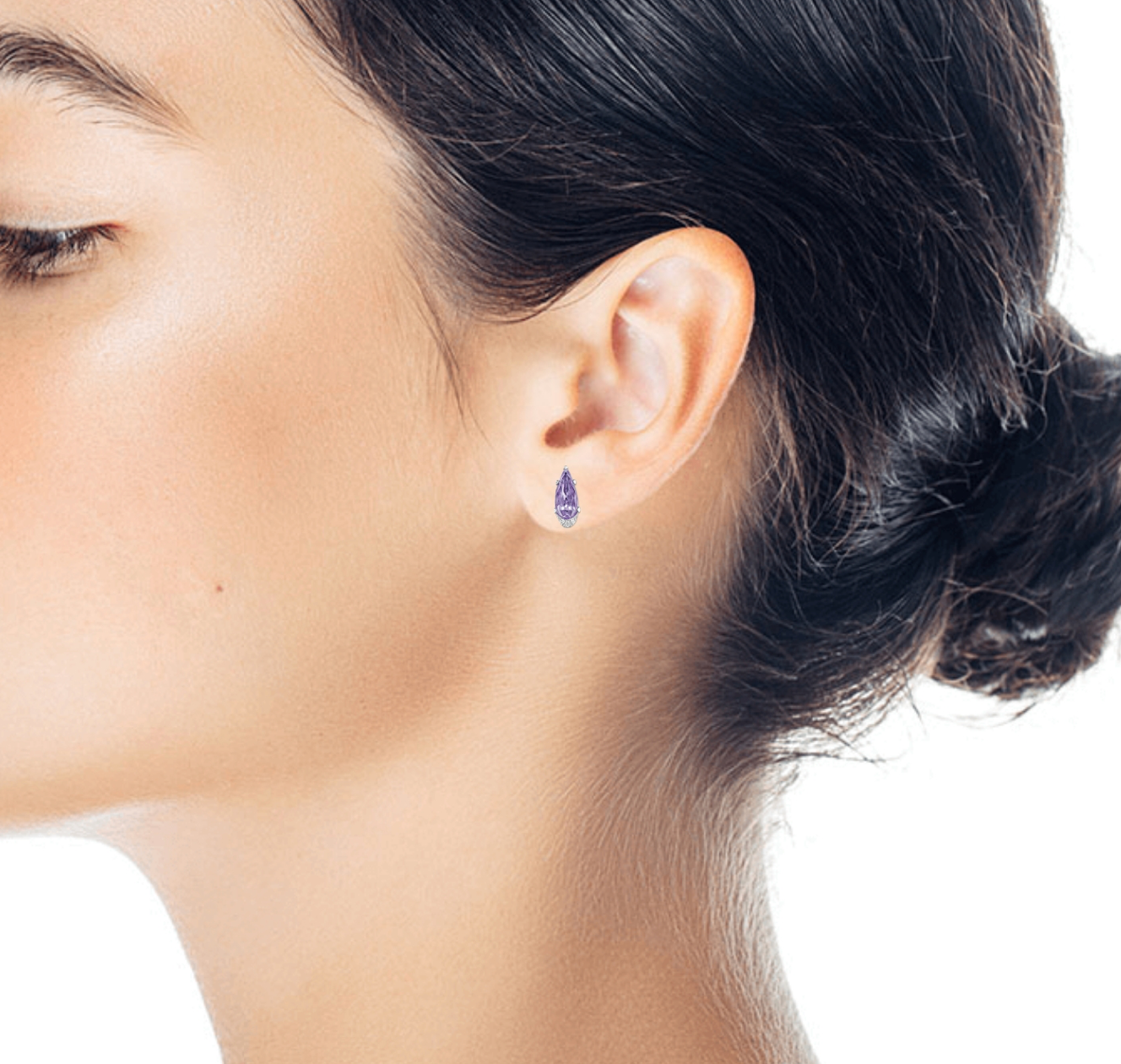 Lilac - 14KT White Gold Amethyst and Diamond Stud Earrings