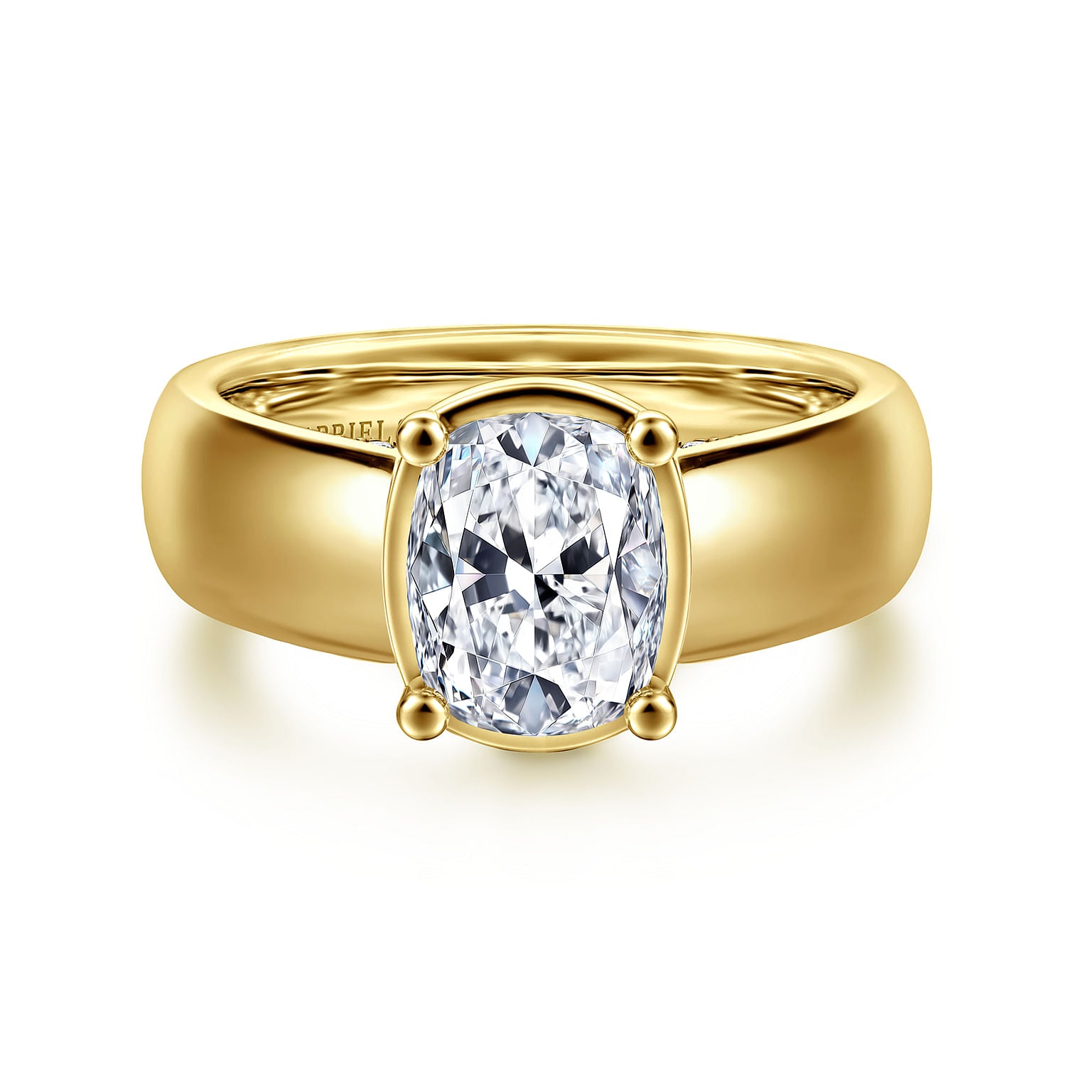 Elza - 14K Yellow Gold Wide Band Elongated Cushion Diamond Engagement Ring