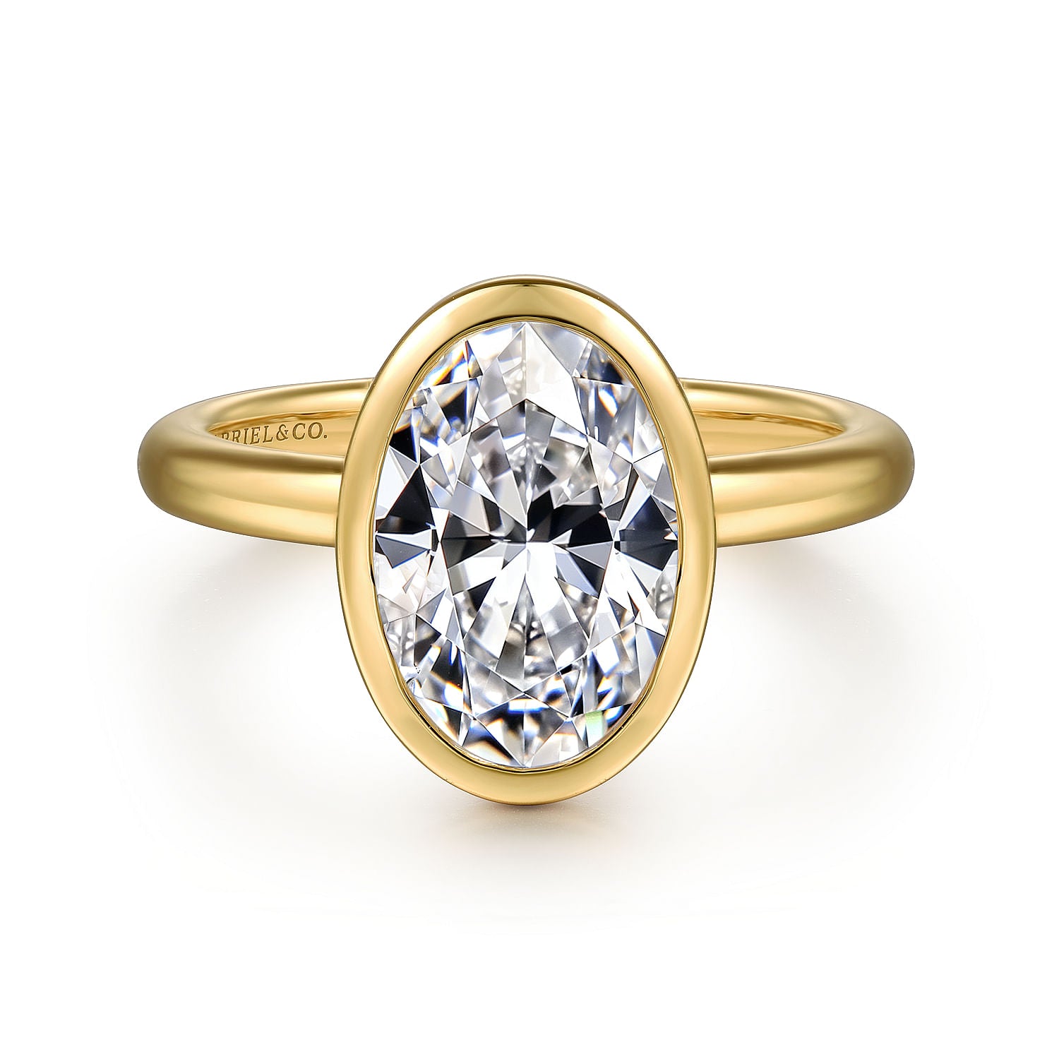 Linny - 14K Yellow Gold Oval Bezel Set Diamond Engagement Ring