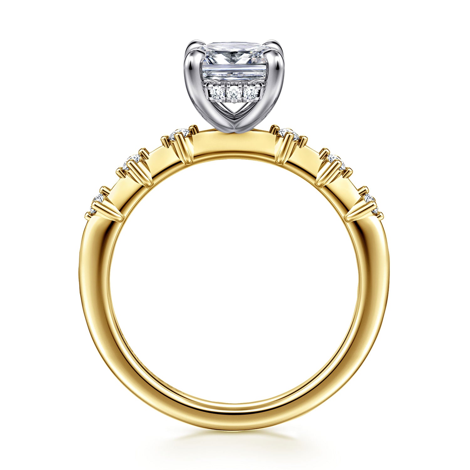 Carmellia - 14K White-Yellow Gold Cushion Cut Diamond Engagement Ring