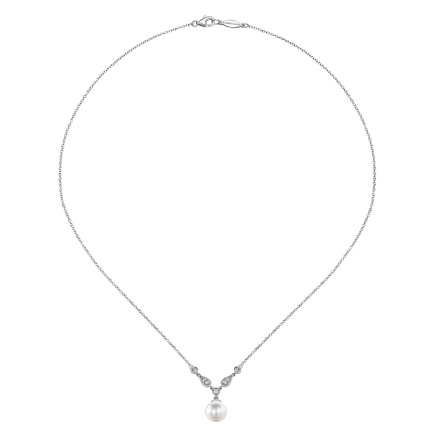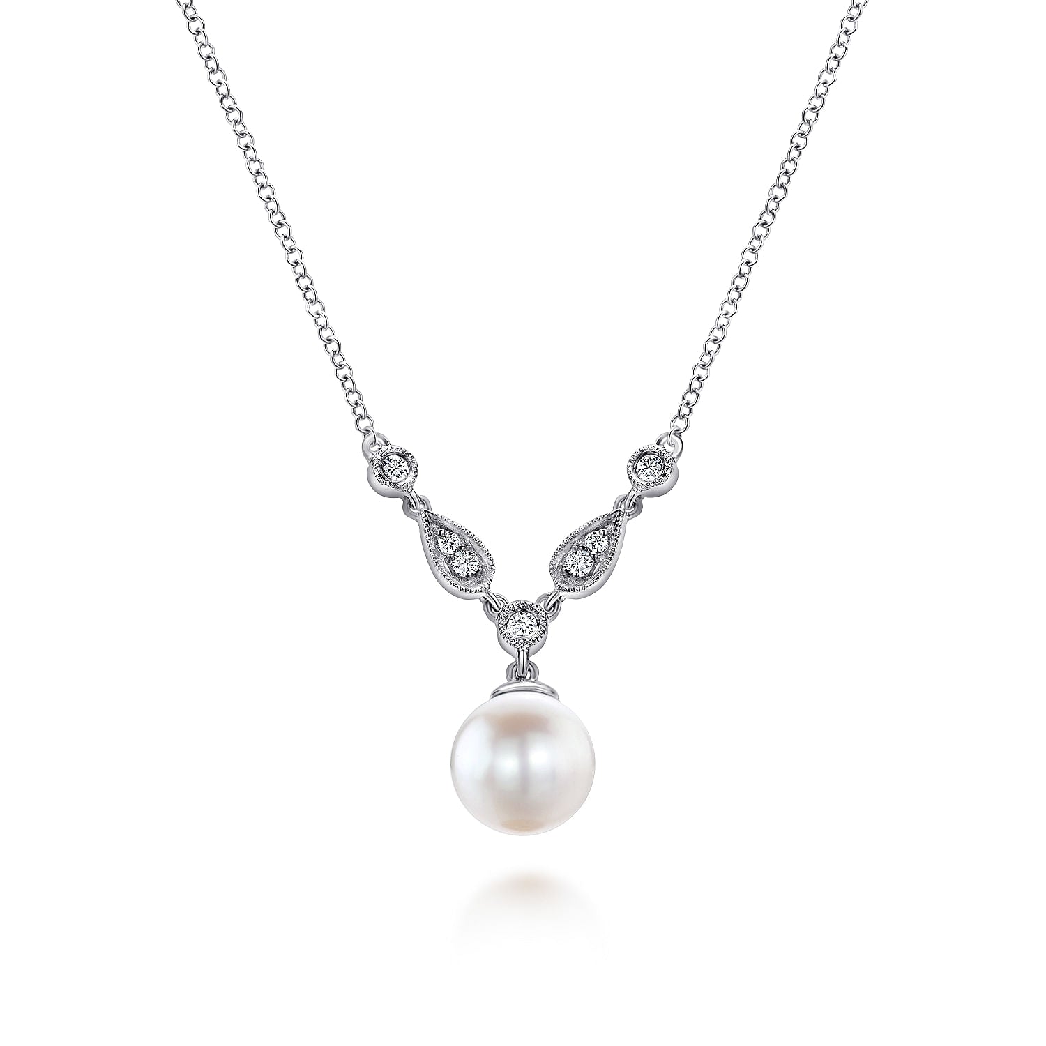 14K White Gold Cultured Pearl and Diamond Accent Necklace
