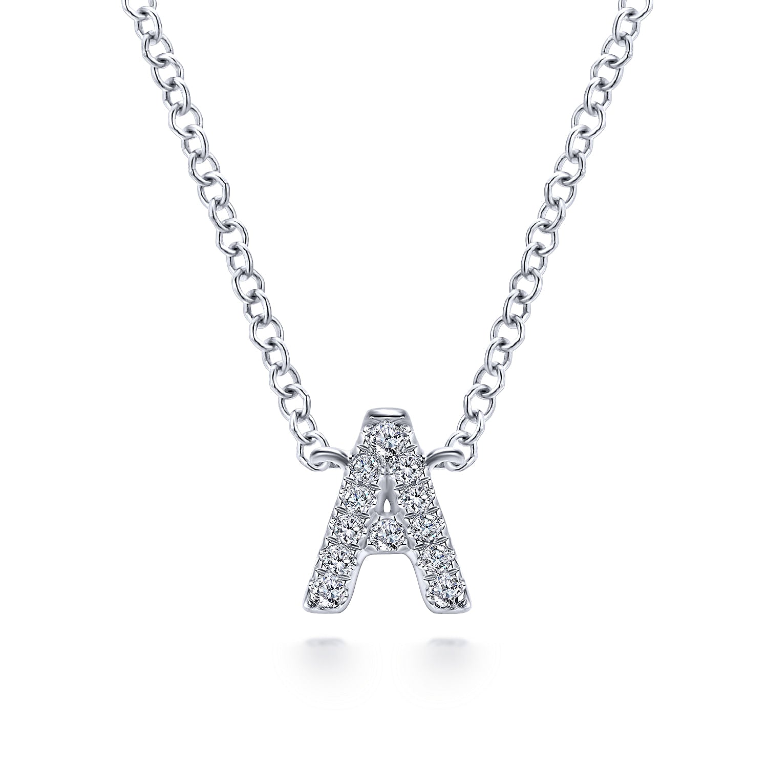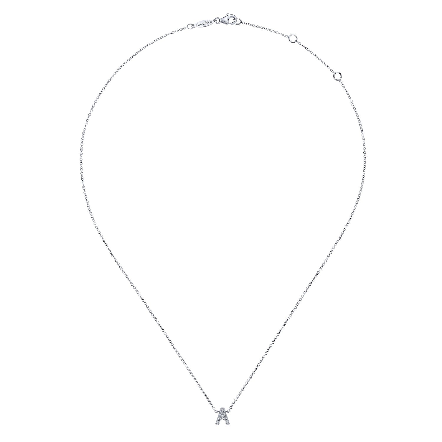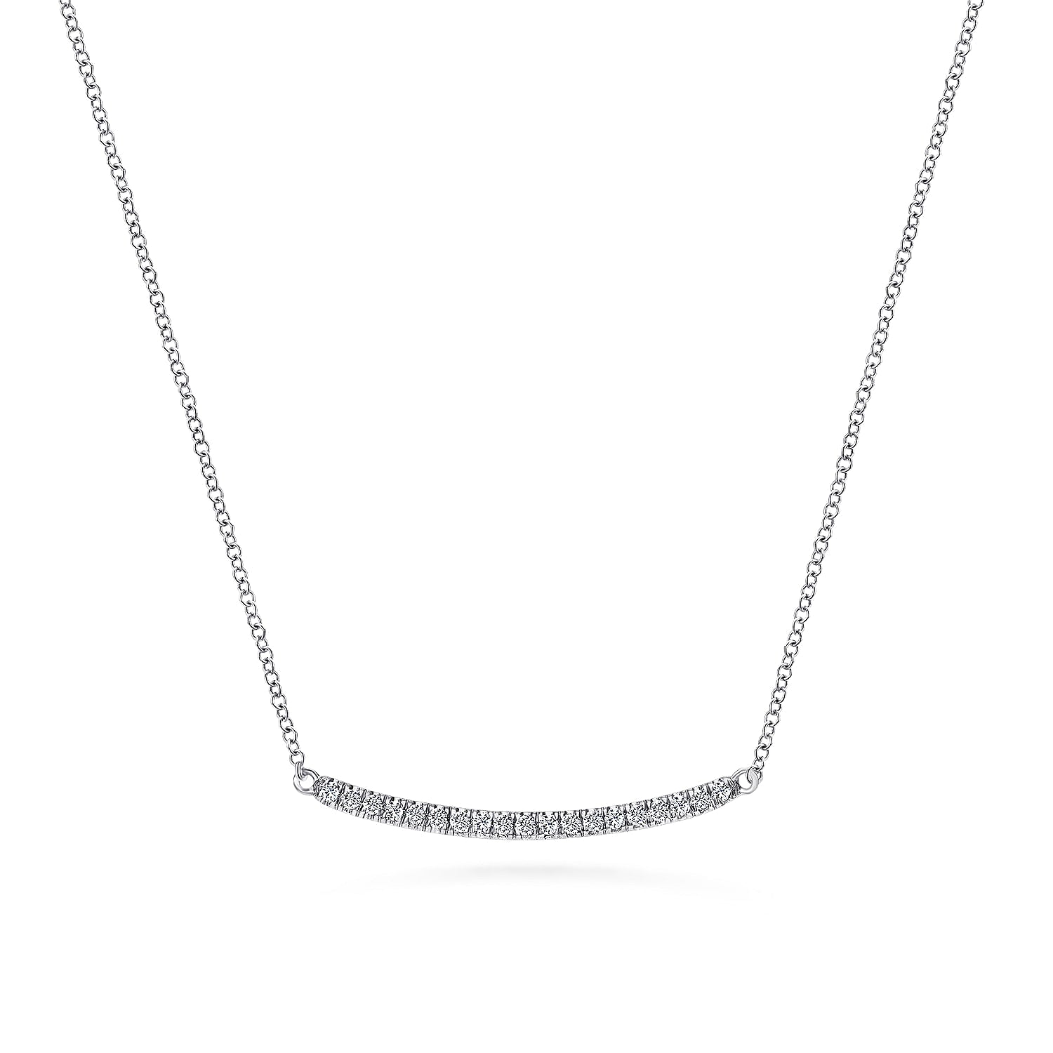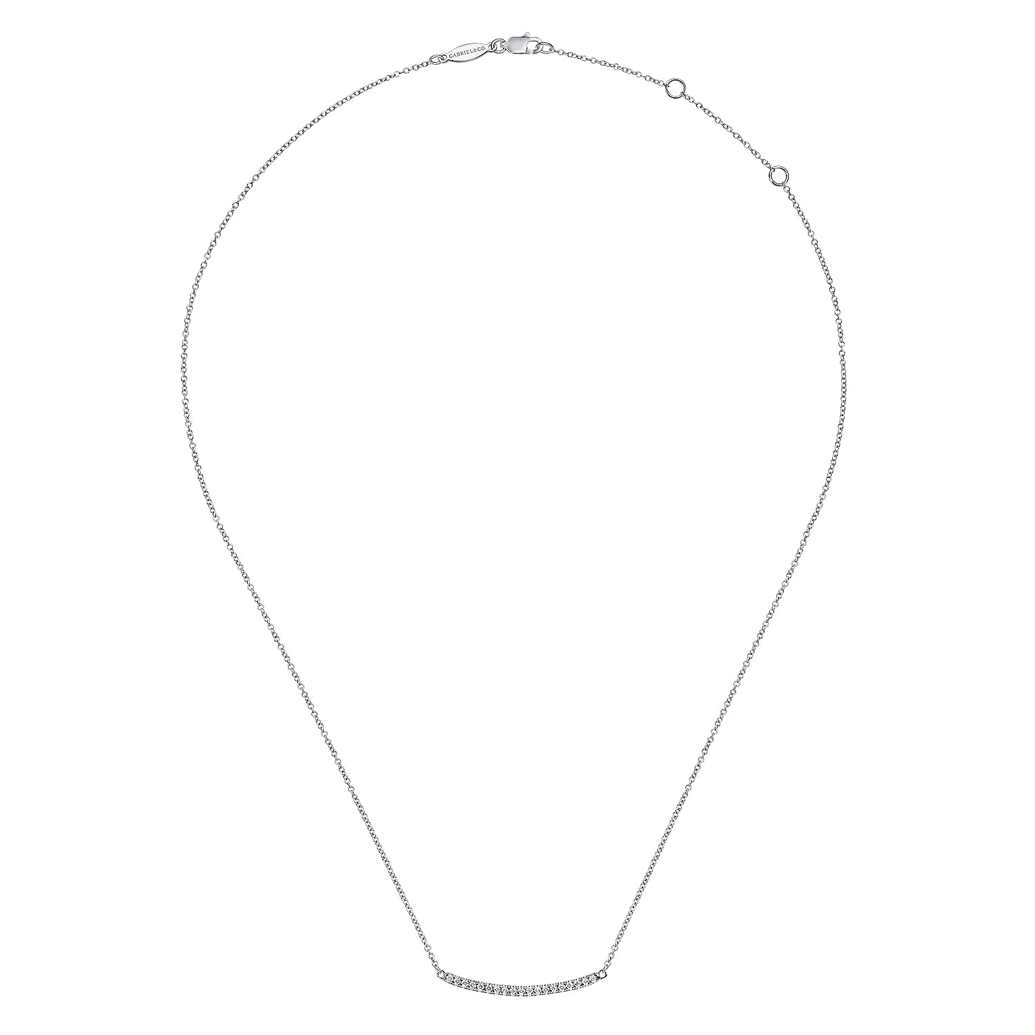 14K White Gold Diamond Pavé Curved Bar Necklace