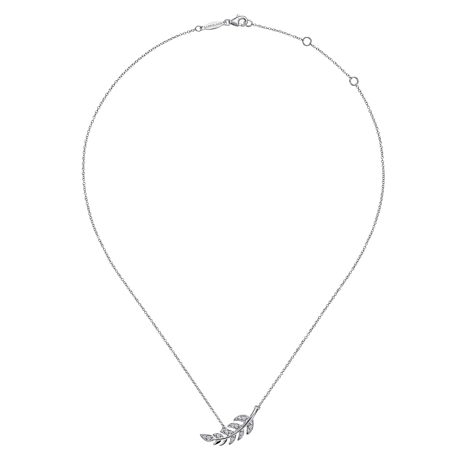 14K White Gold Sideways Curved Diamond Cross Necklace