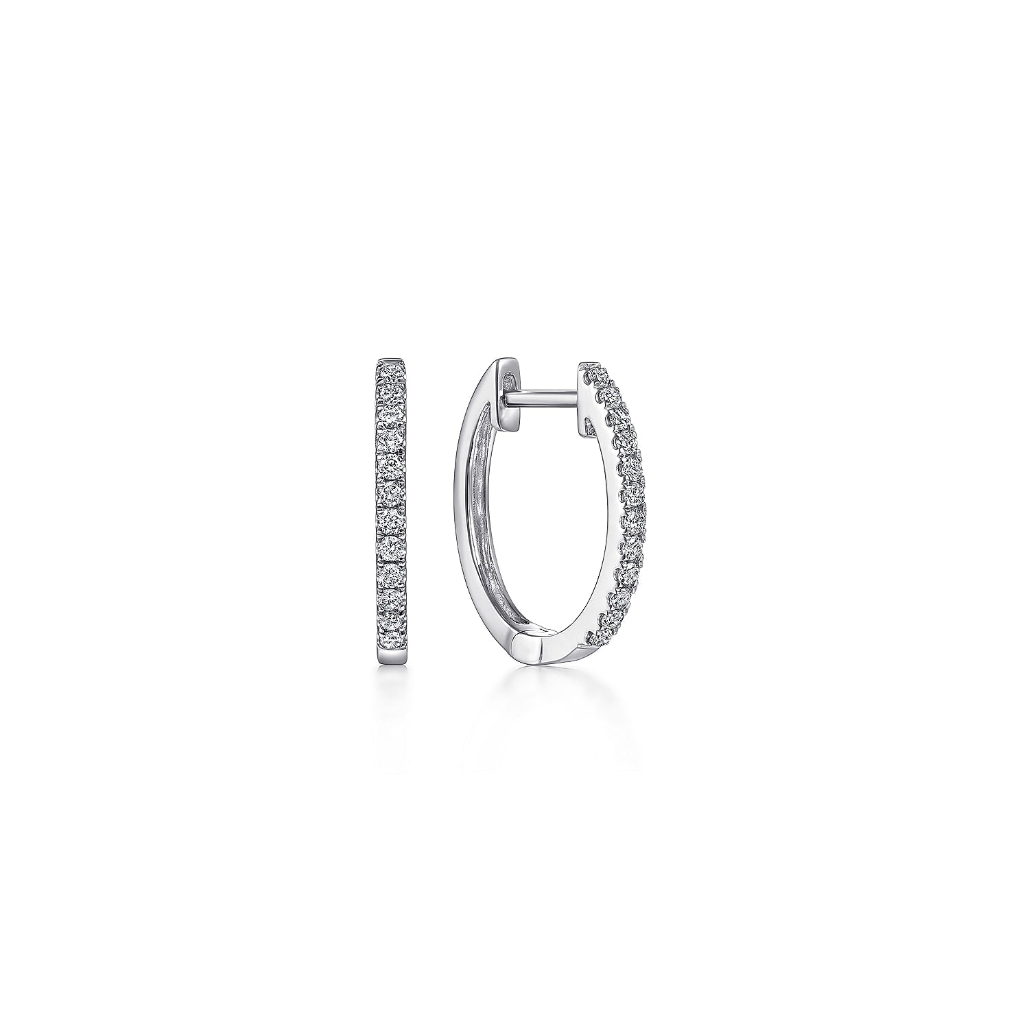 14K White Gold 13mm Classic Diamond Huggie Earrings