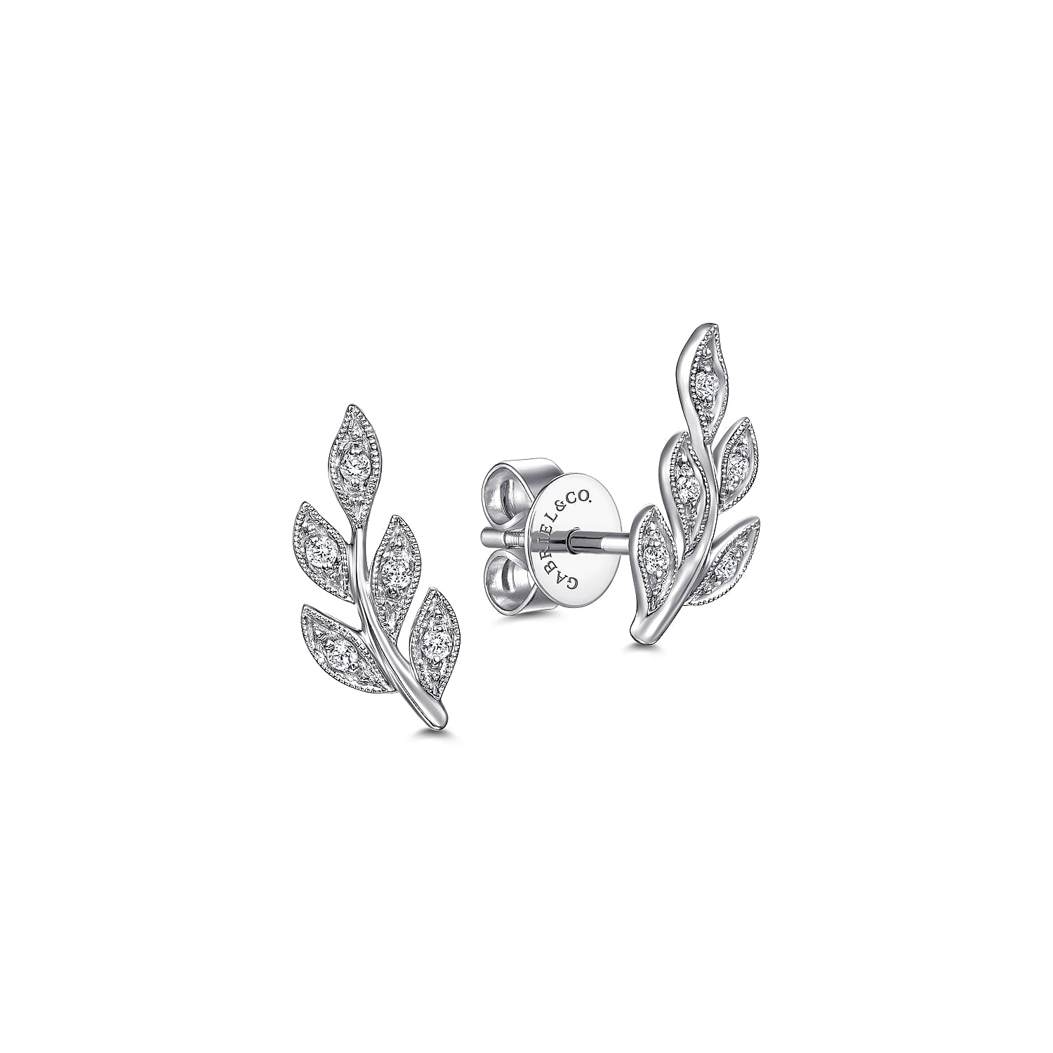14K White Gold Diamond Leaf Stud Earrings