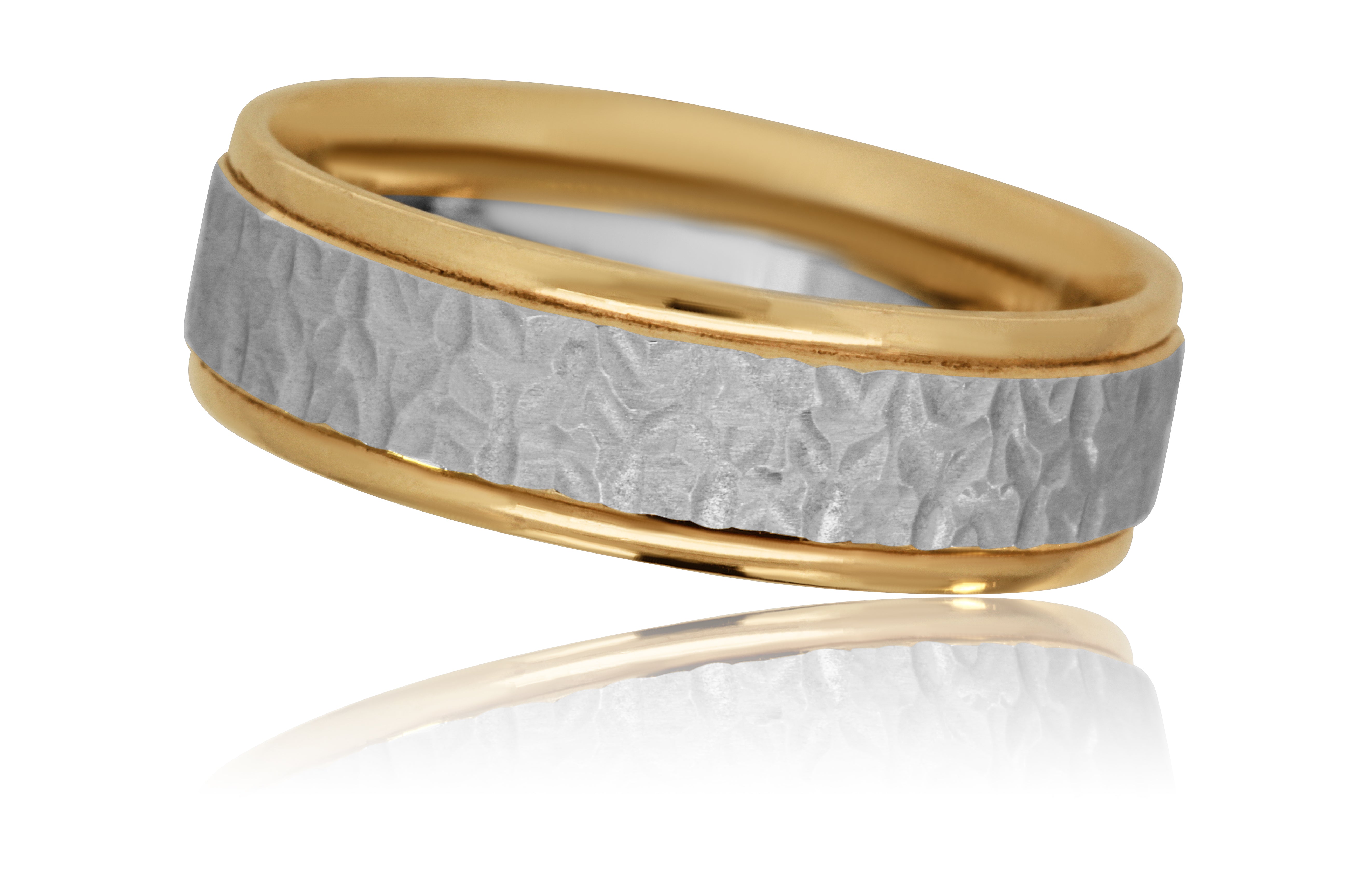 14K Two-Tone Gold Men’s Wedding Band | Hammered Matte Center