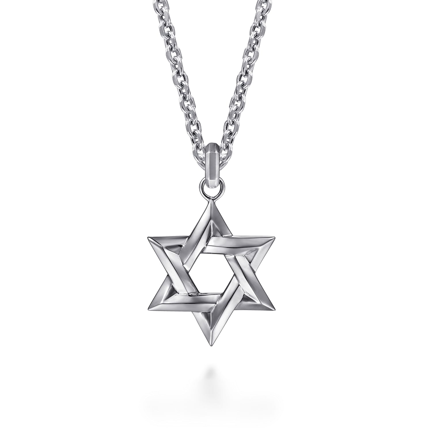 22 Inch 925 Sterling Silver Star of David Pendant Necklace