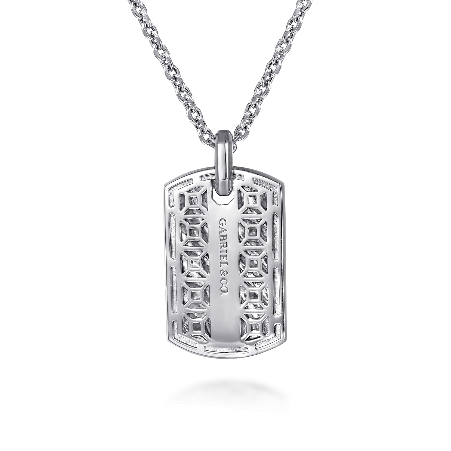22 Inch 925 Sterling Silver Black Spinel Dog Tag Pendant Necklace