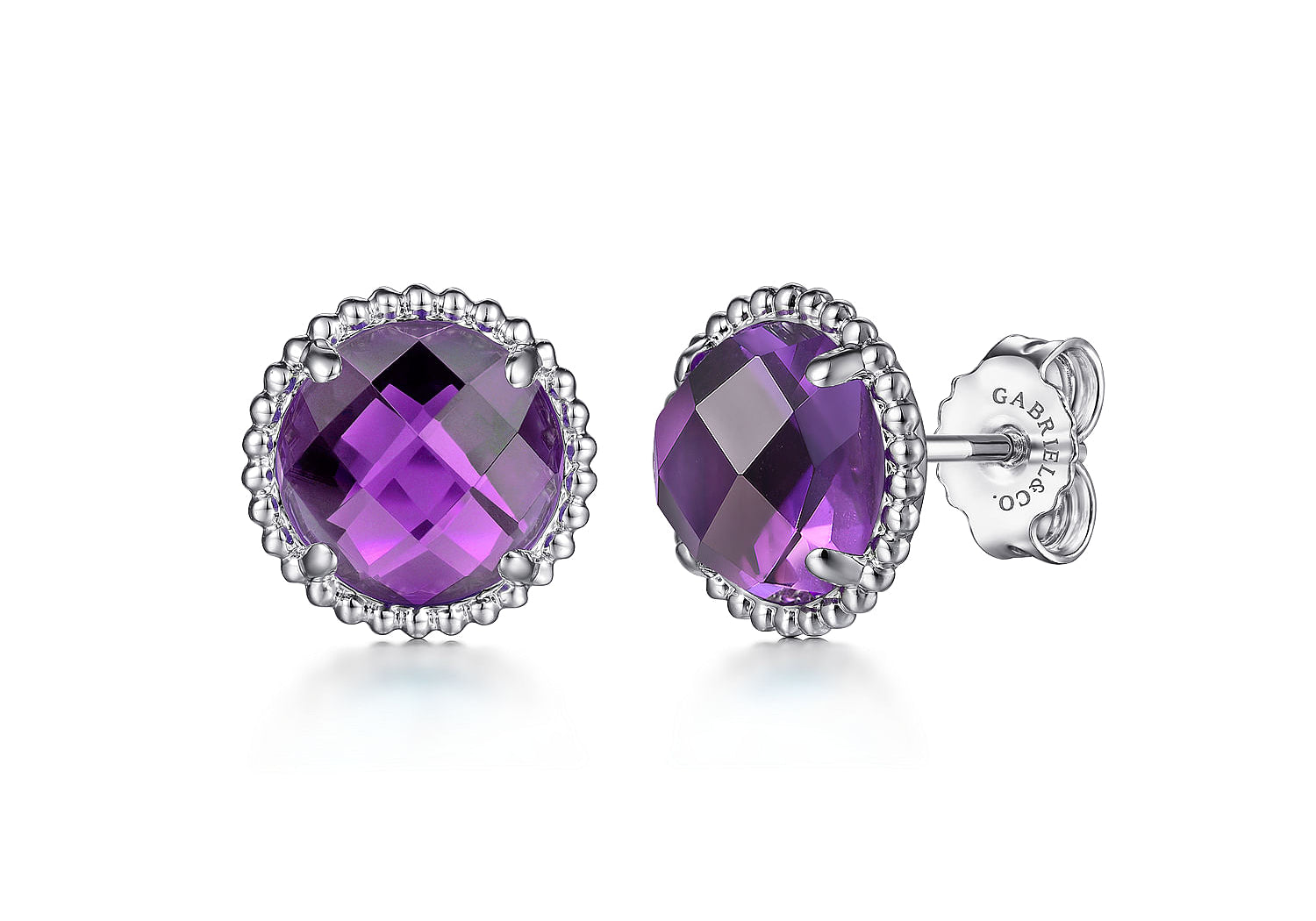 925 Sterling Silver Bujukan Amethyst Stud Earrings