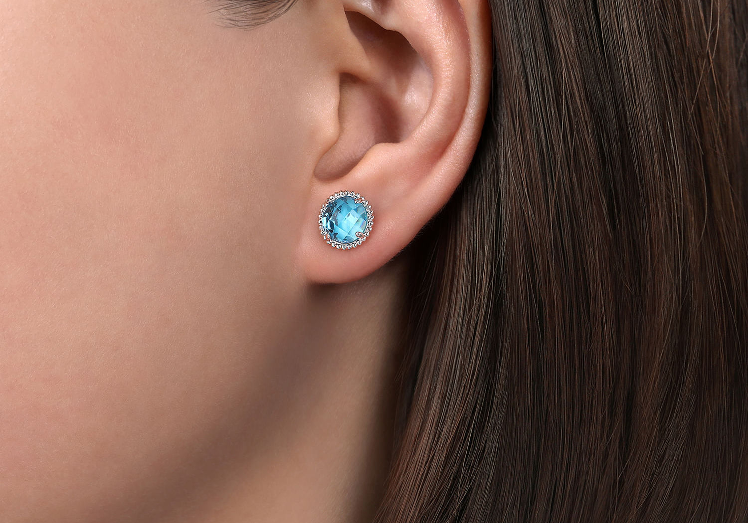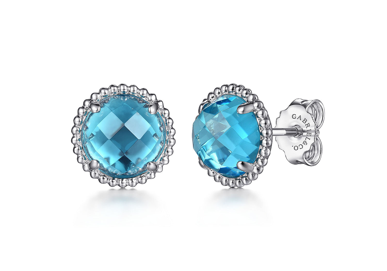 925 Sterling Silver Bujukan Blue Topaz Stud Earrings
