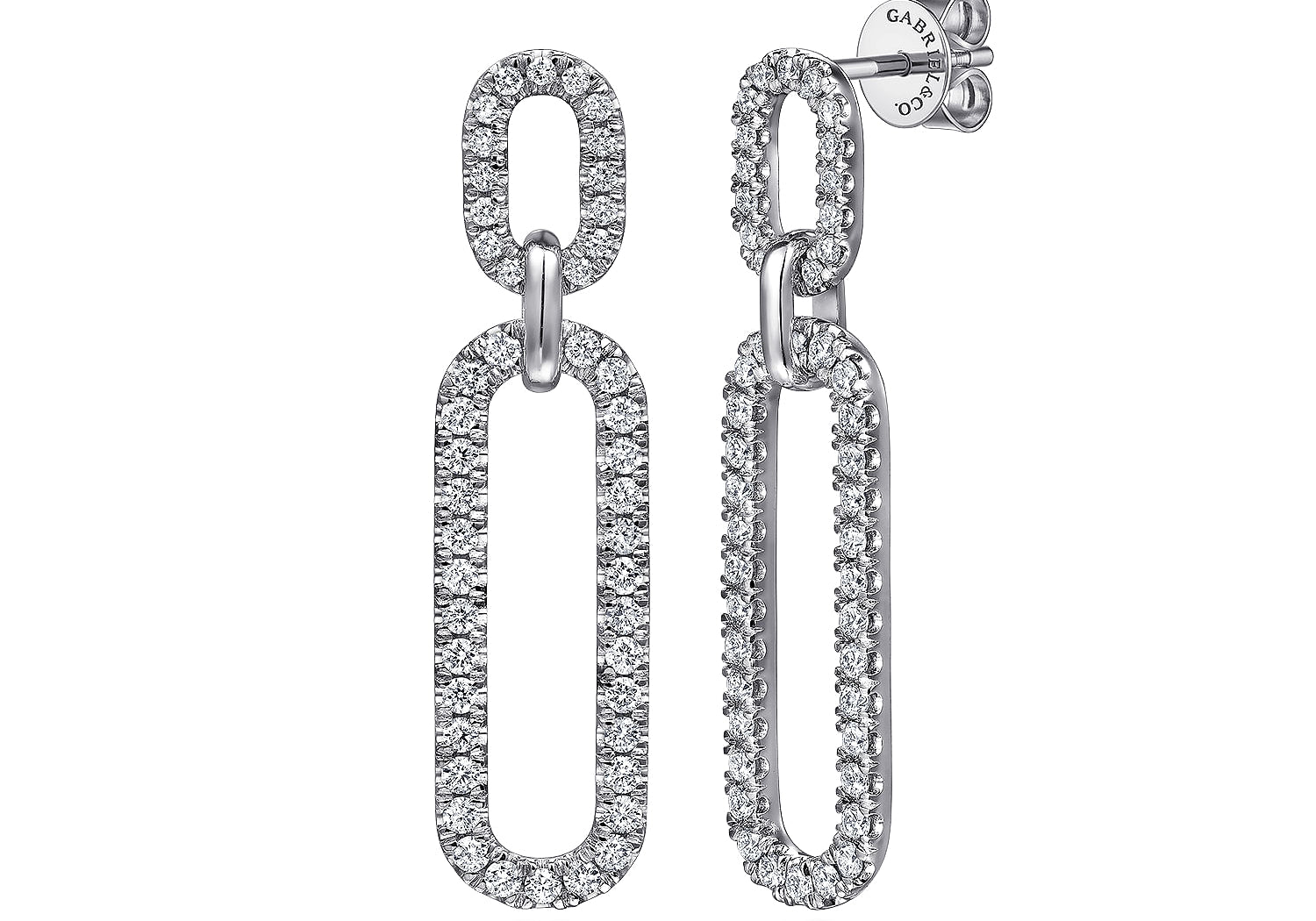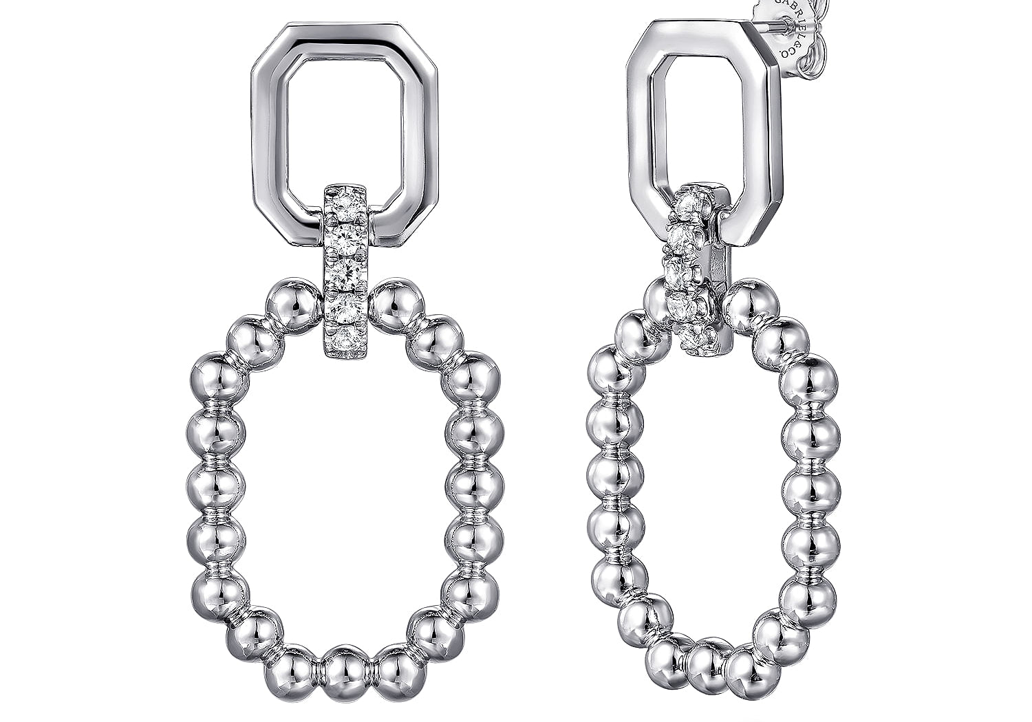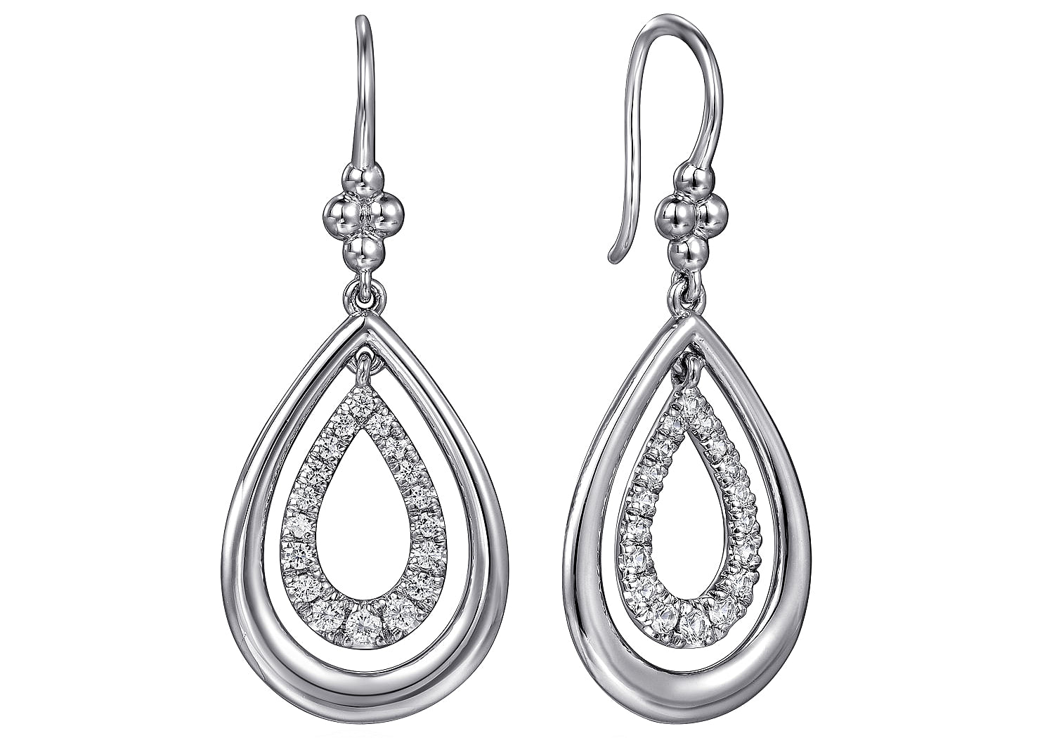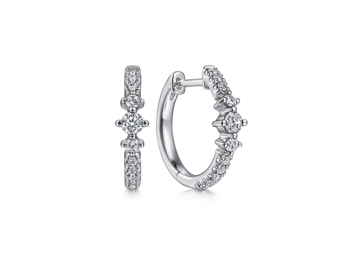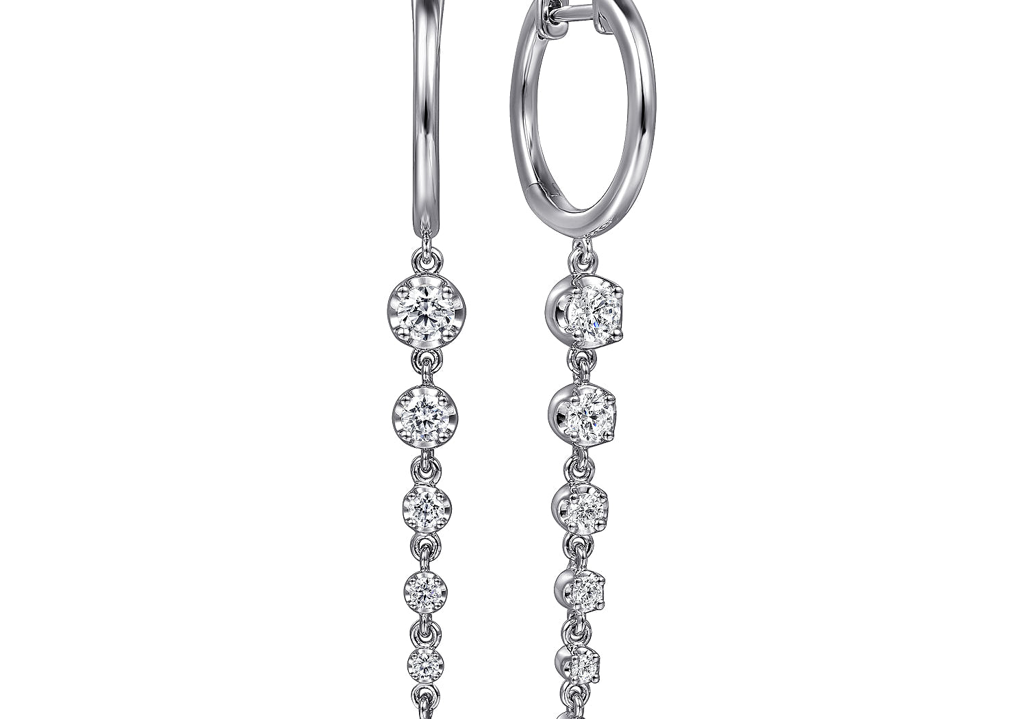 14K White Gold Graduating Diamond Huggie Drop Earrings