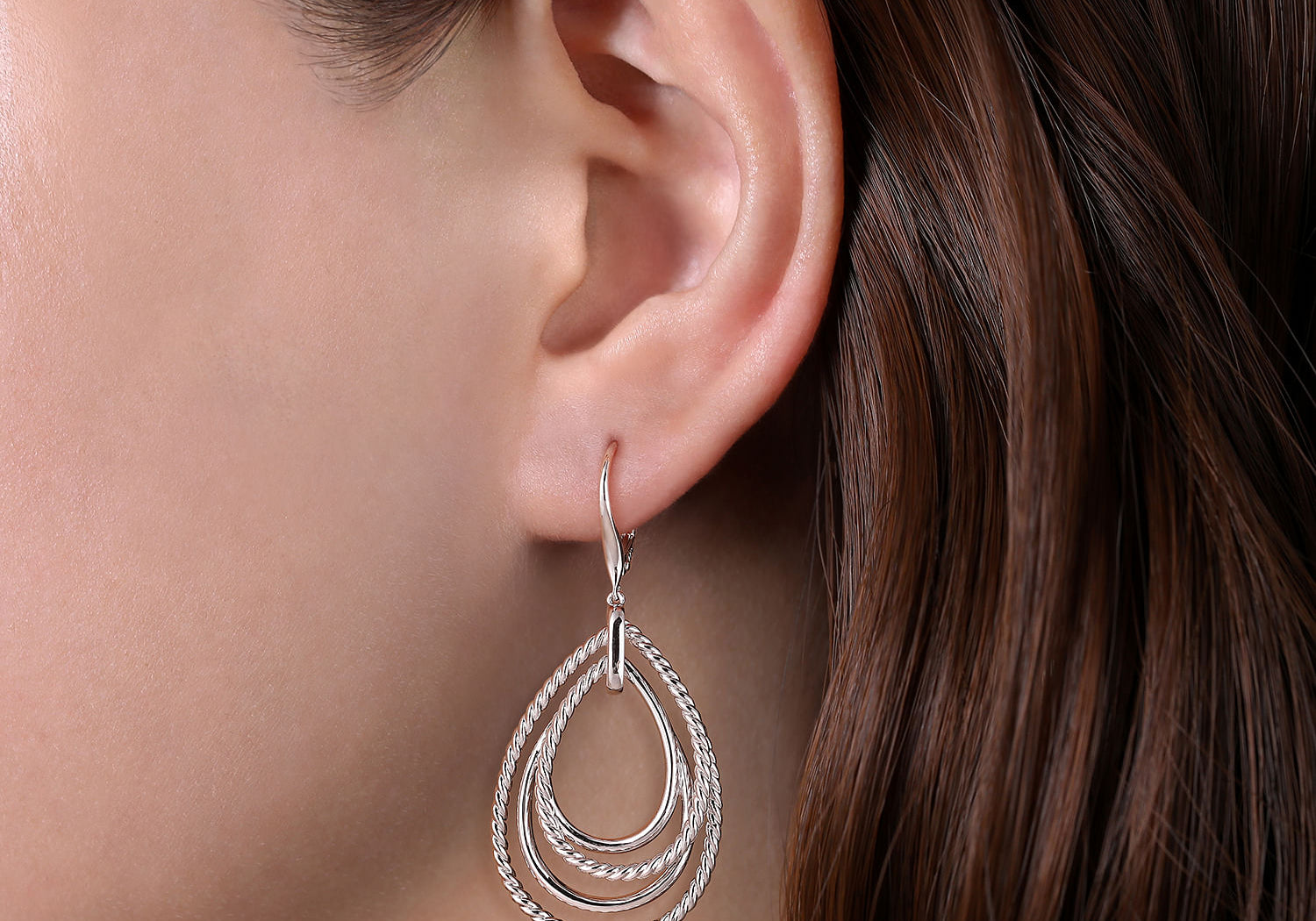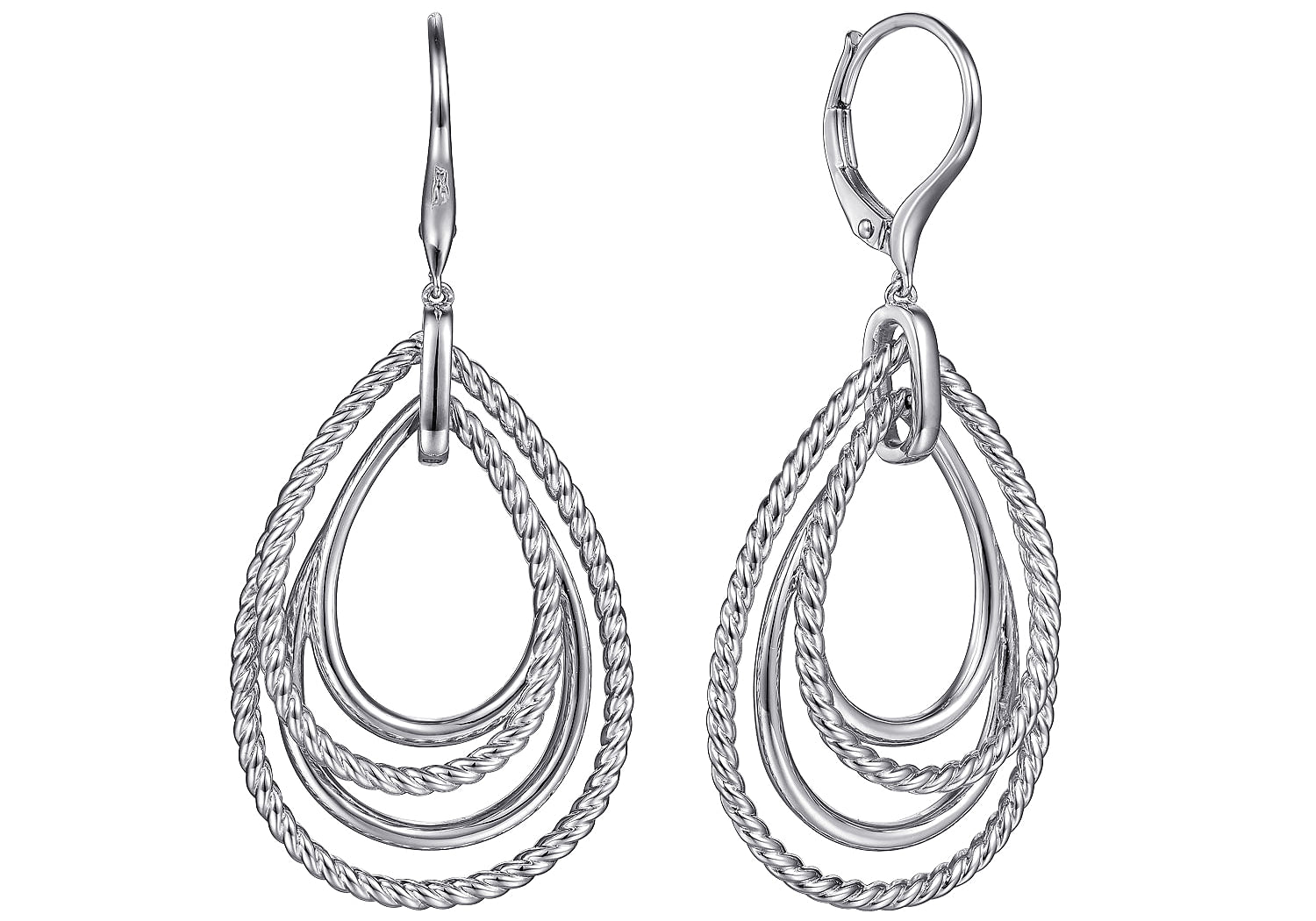 925 Sterling Silver Multi Row Open Teardrop Leverback Earrings