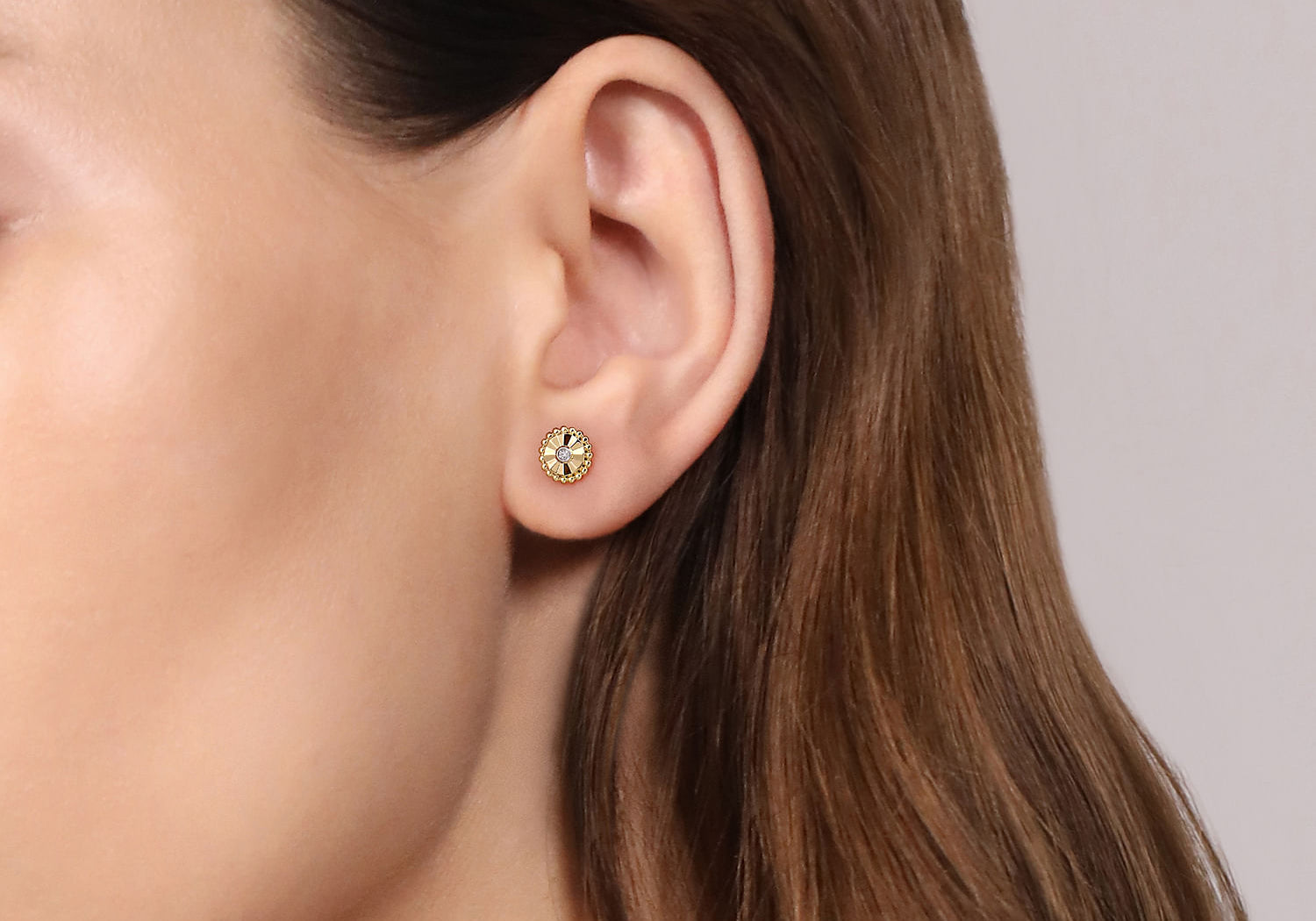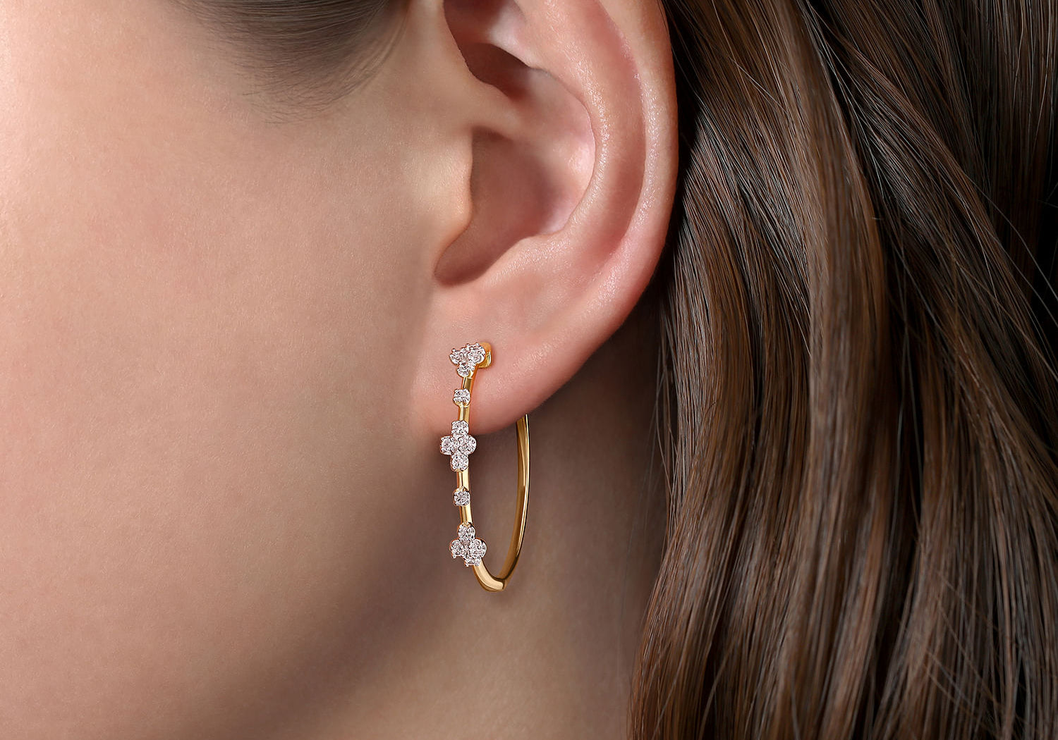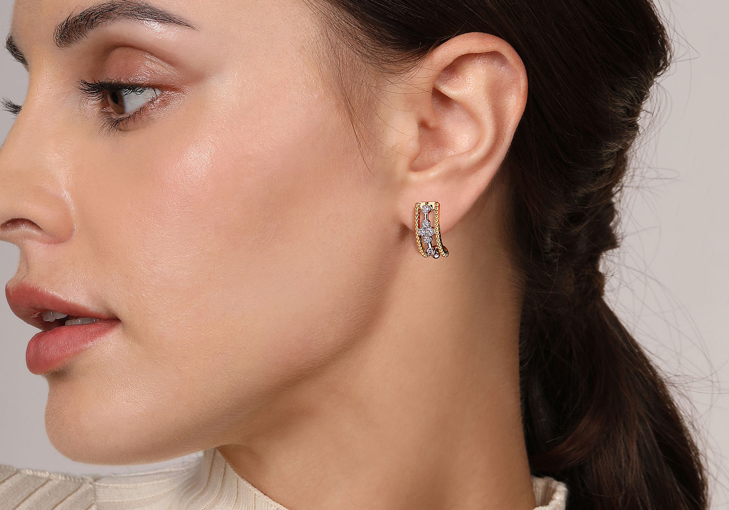 14K White-Yellow Gold Bujukan Diamond Circle Huggies