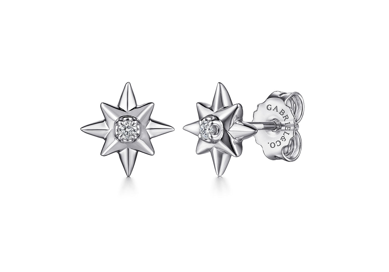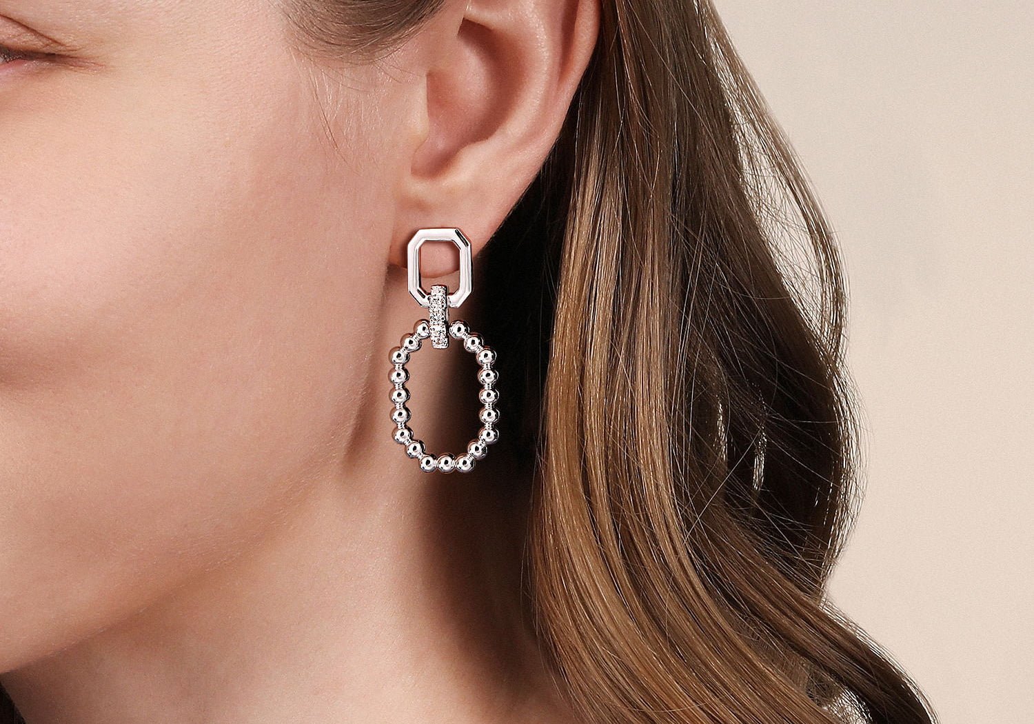 925 Sterling Silver Octagon White Sapphire Bujukan Stud Drop Earrings