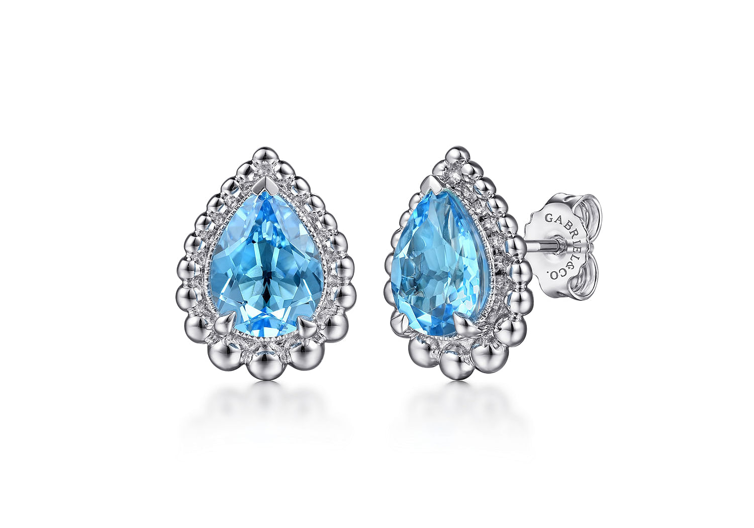 925 Sterling Silver Faceted Swiss Blue Topaz Pear Shape Bujukan Stud Earrings