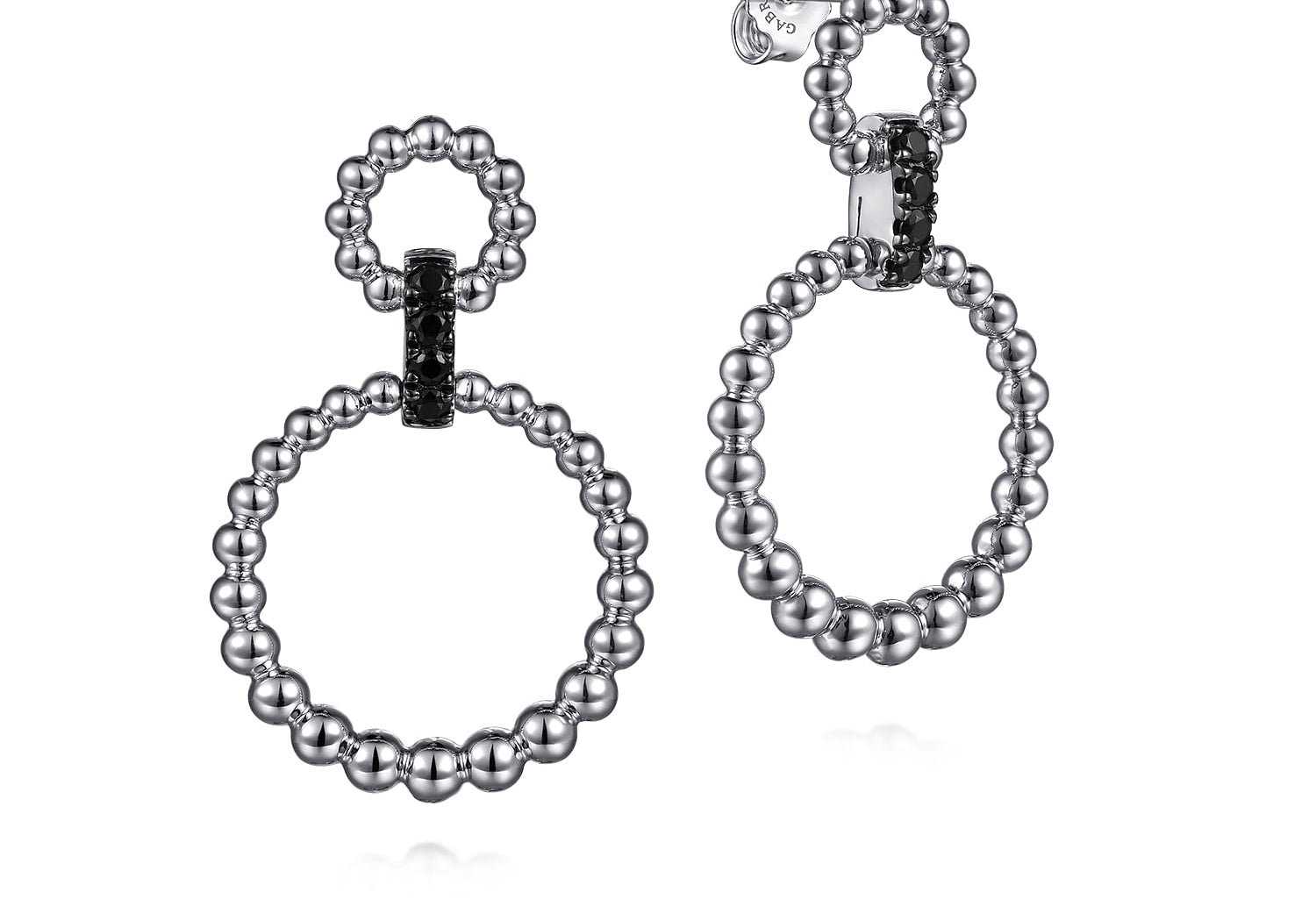 925 Sterling Silver Black Spinel Bujukan Link Drop Earrings