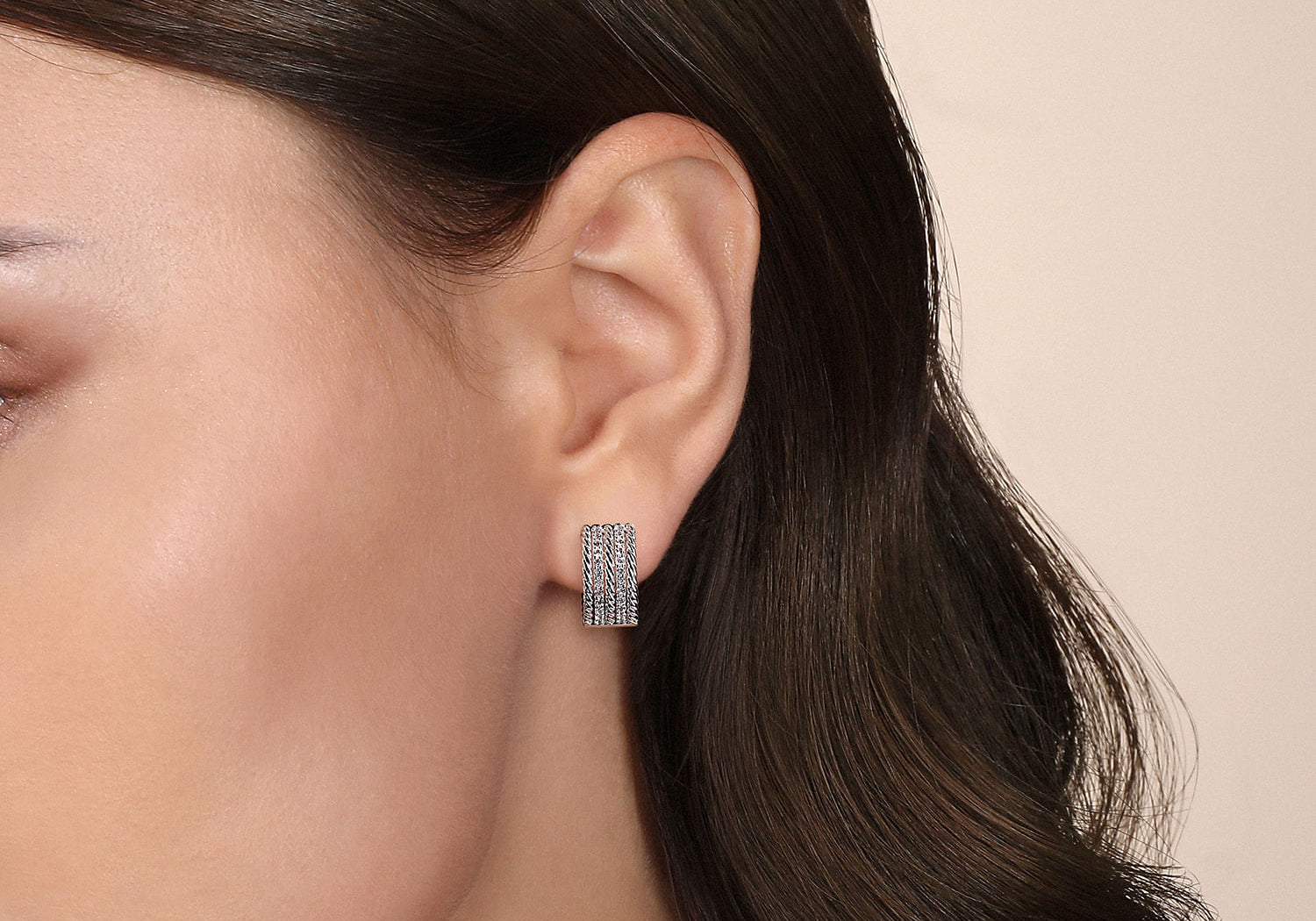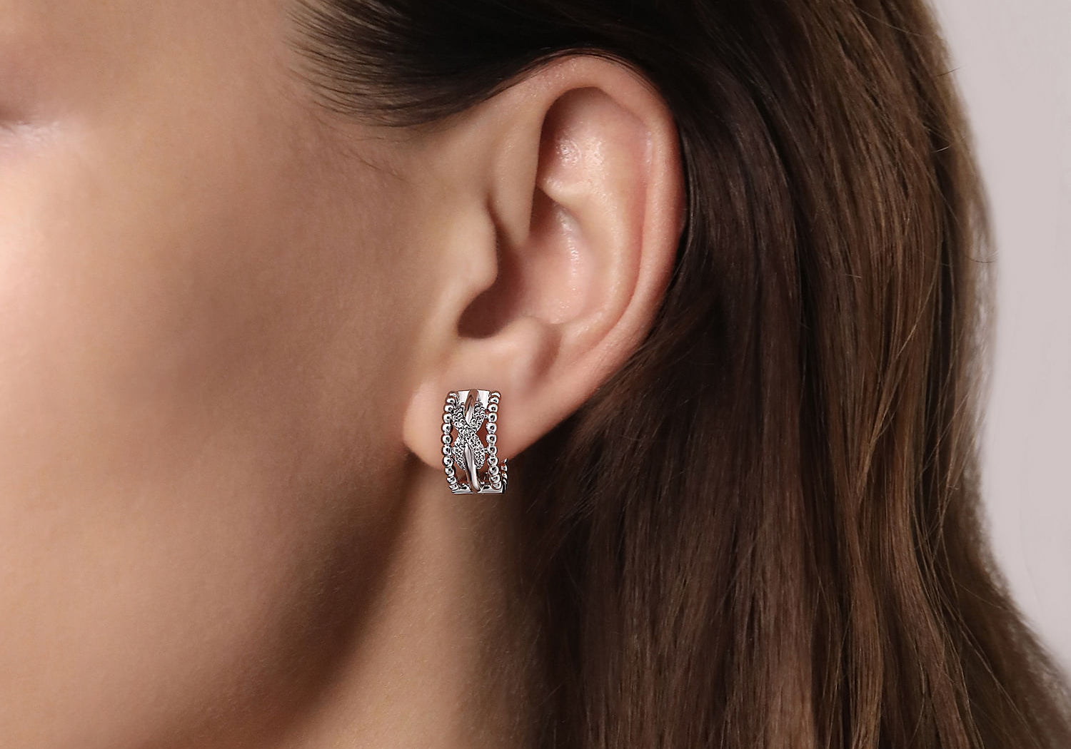925 Sterling Silver Twisted Bujukan Huggie Earrings