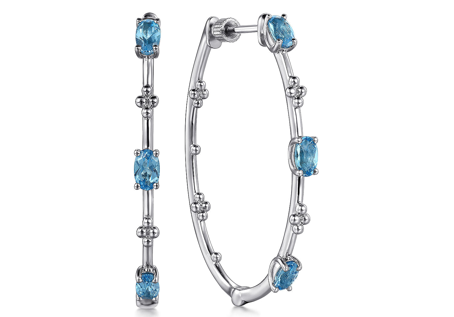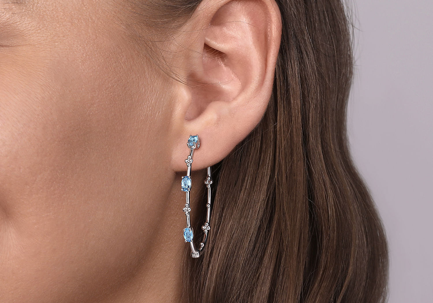 925 Sterling Silver Swiss Blue Topaz Bujukan Classic 40mm Hoop Earrings