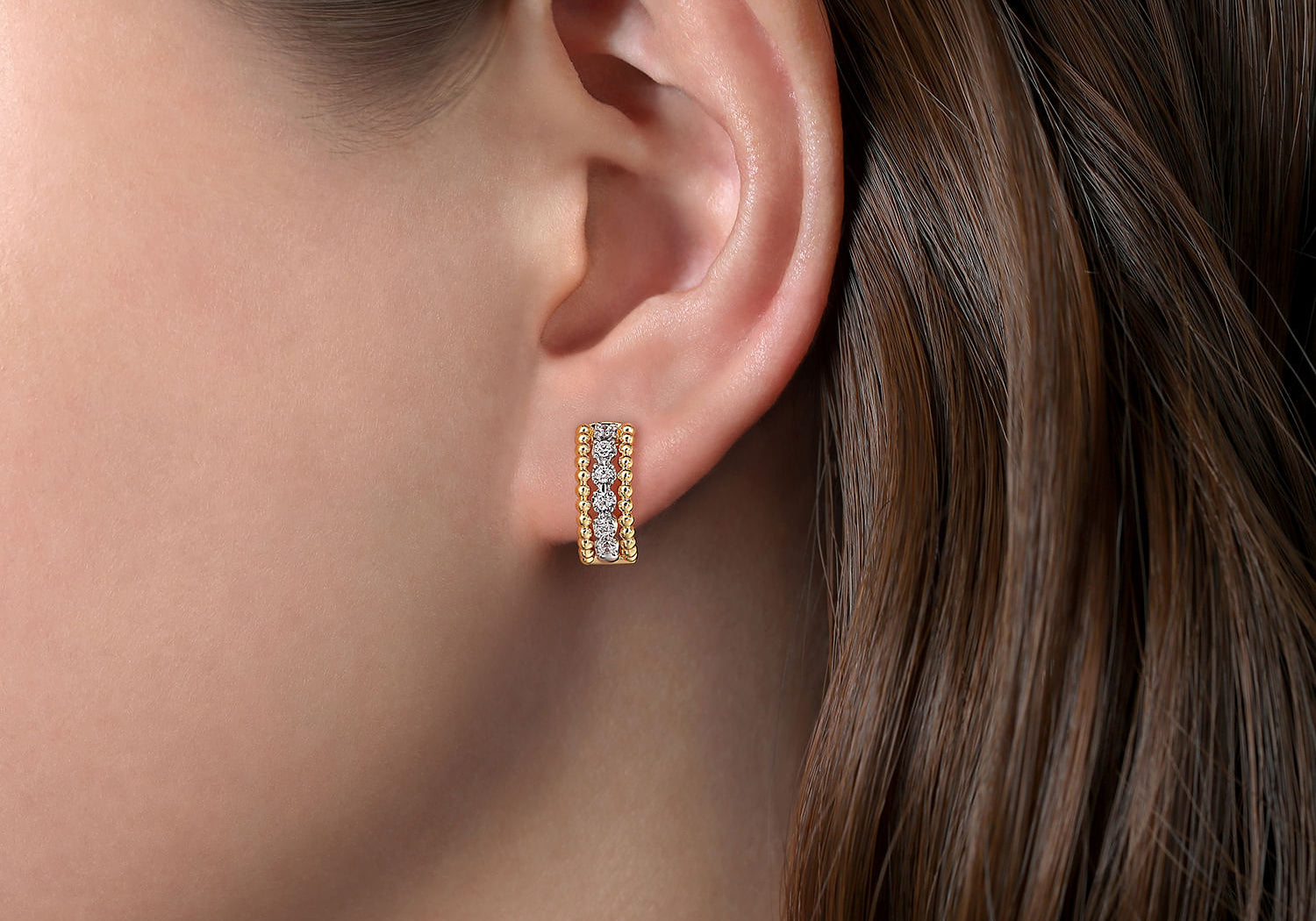 14K White-Yellow Gold Bujukan Huggie Pavé Diamond Earrings