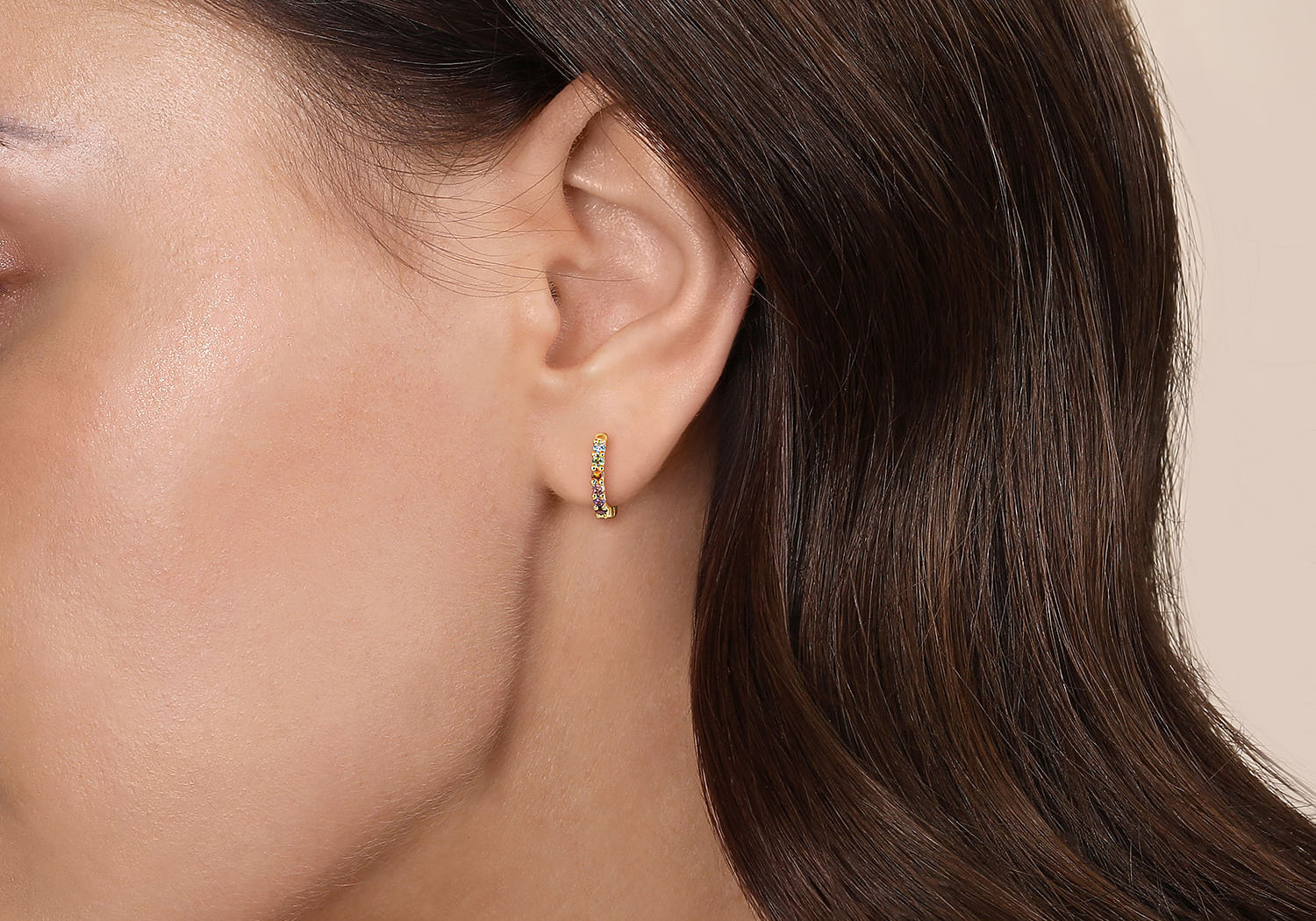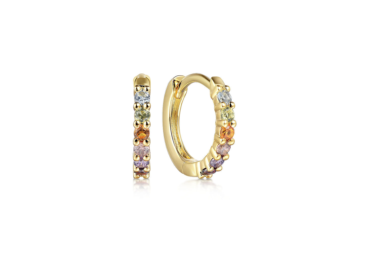 10mm 14K Yellow Gold Rainbow Color Stone Huggie Earrings