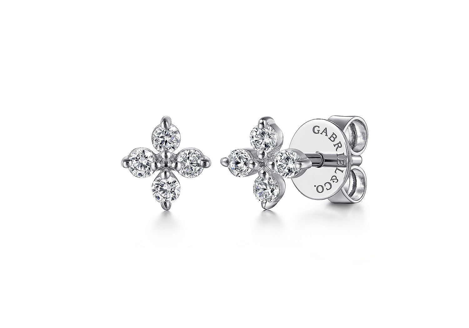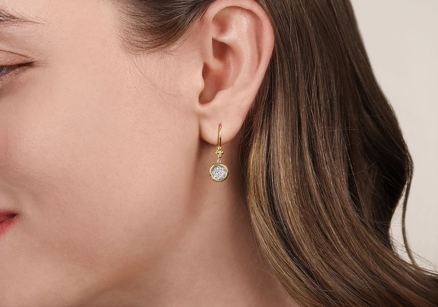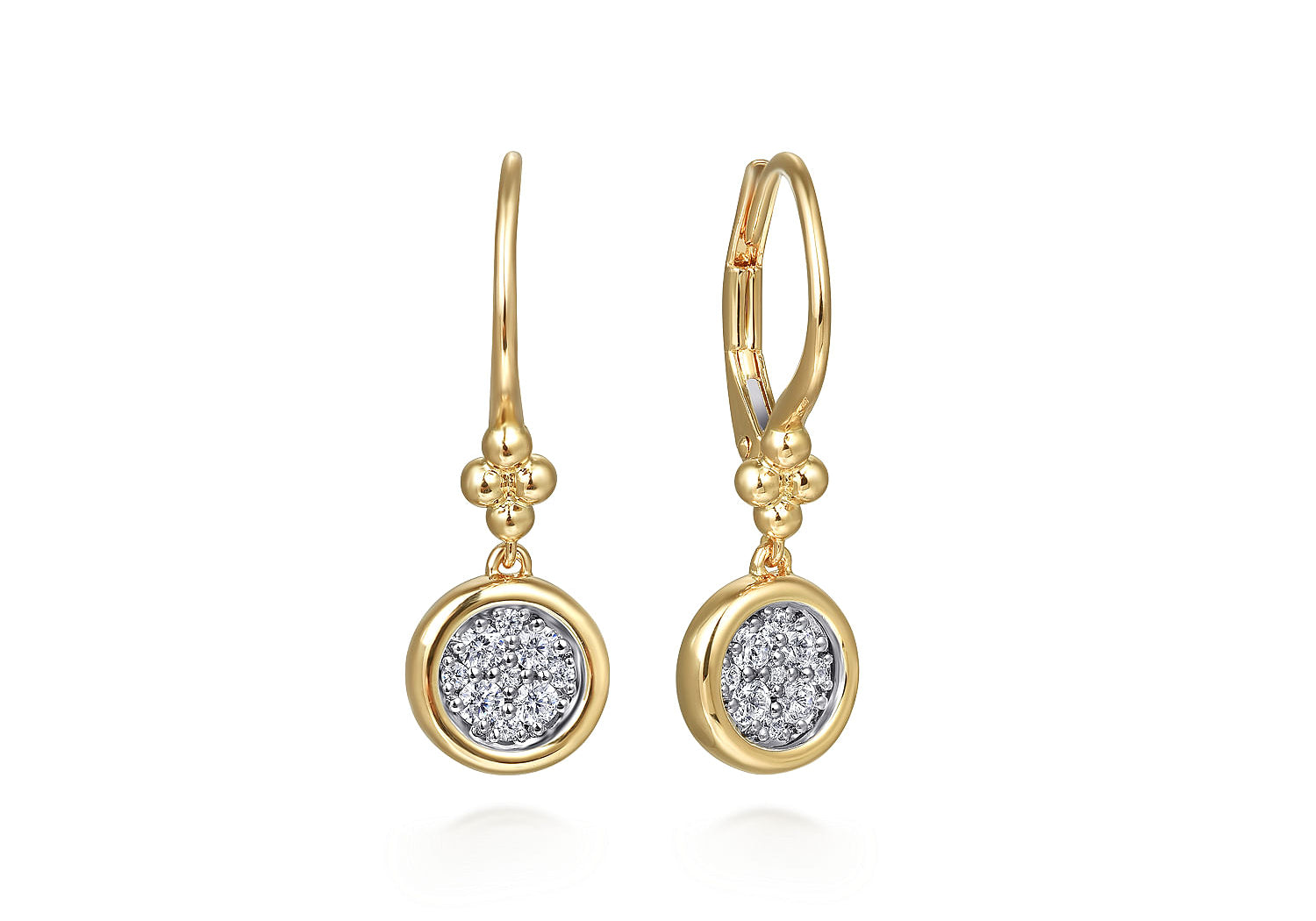 14K White and Yellow Gold Diamond Cluster Bujukan Lever Back Earrings