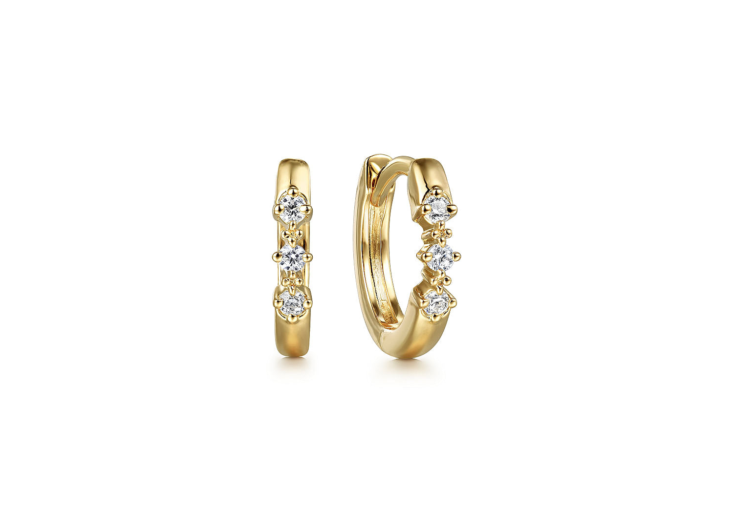 10mm 14K Yellow Gold Diamond Huggie Earrings