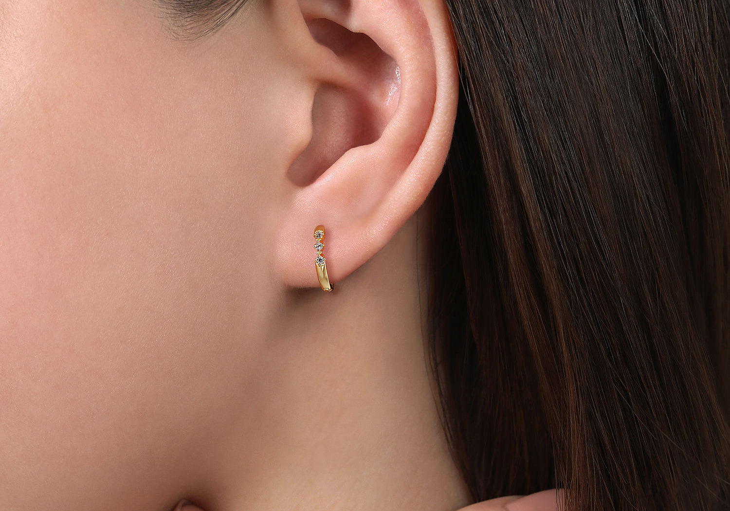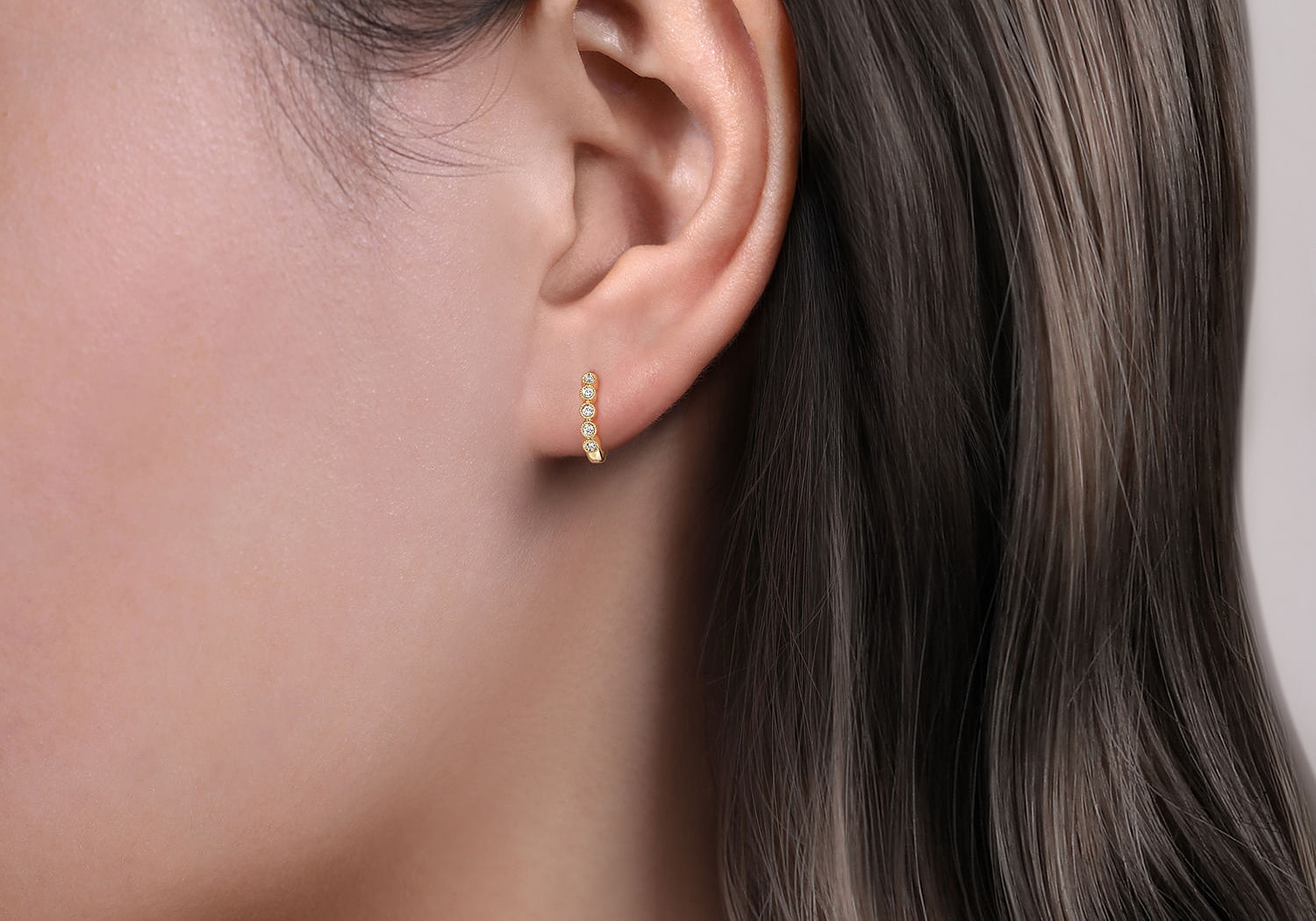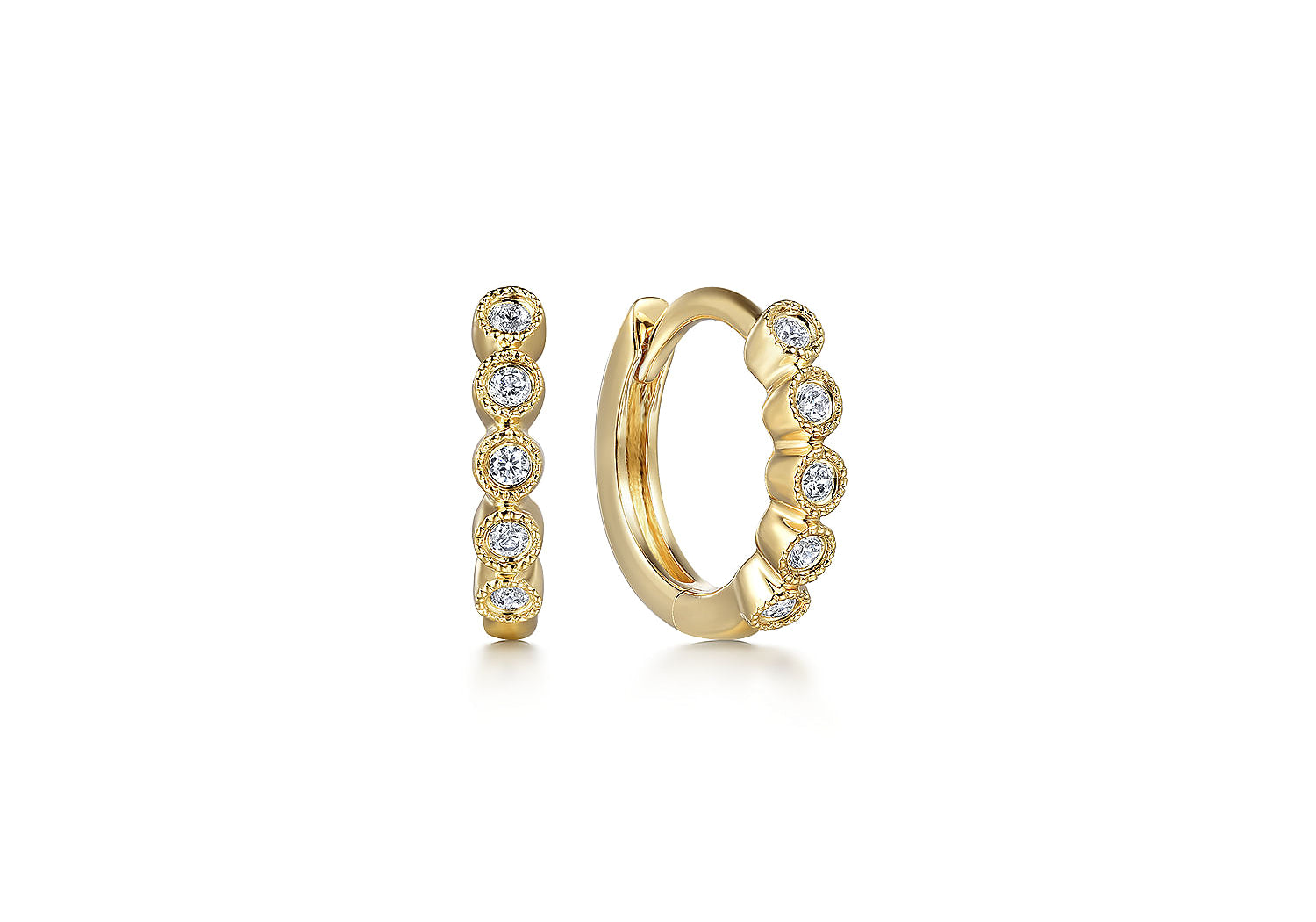 10mm 14K Yellow Gold Diamond Bezel Setting Huggie Earrings