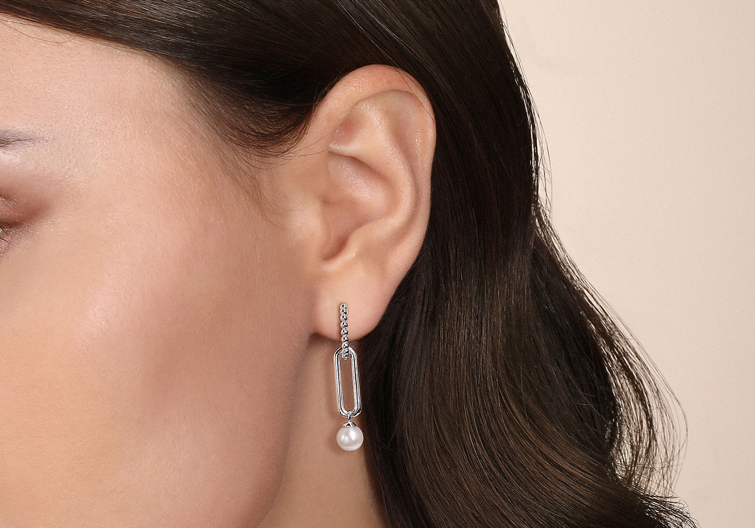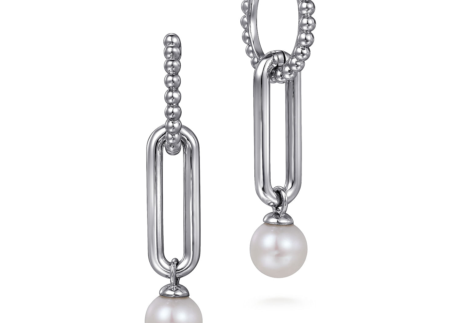 925 Sterling Silver Pearl Bujukan Huggie Drop Earrings