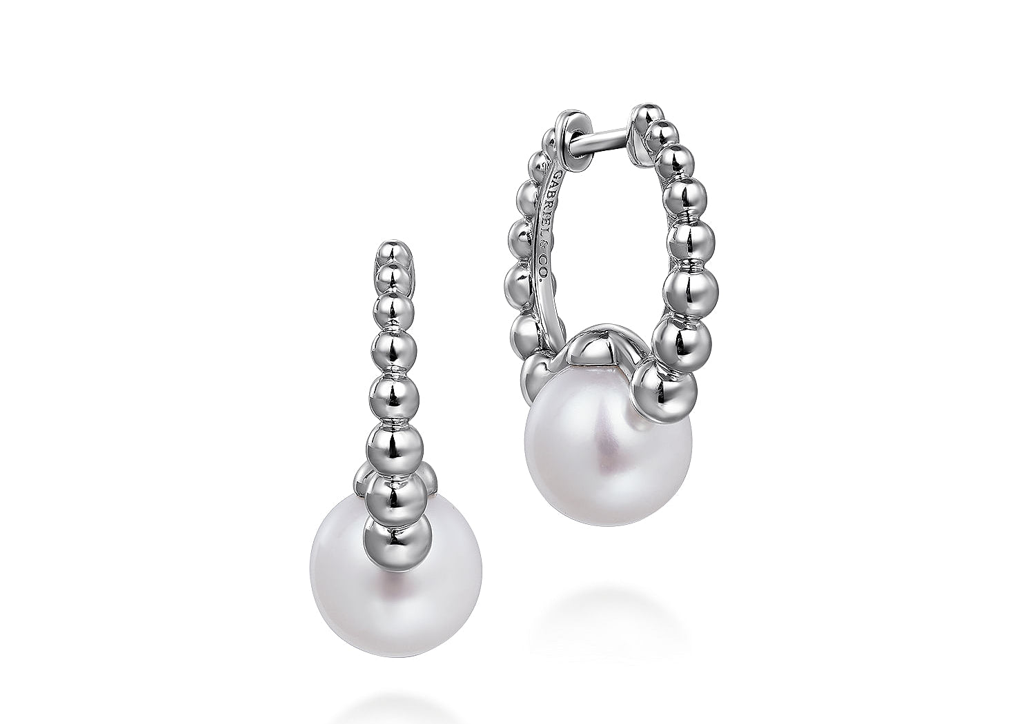 925 Sterling Silver Pearl Bujukan Huggie in size 15mm