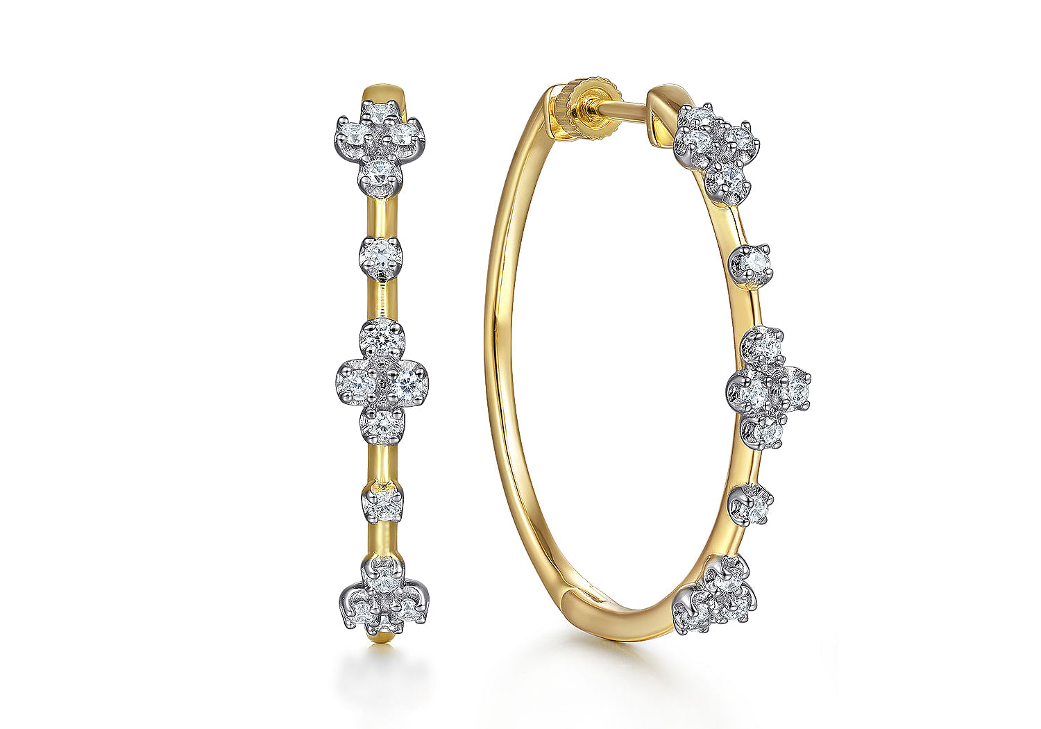 14K Yellow Gold Prong Set 30mm Round Classic Diamond Hoop Earrings