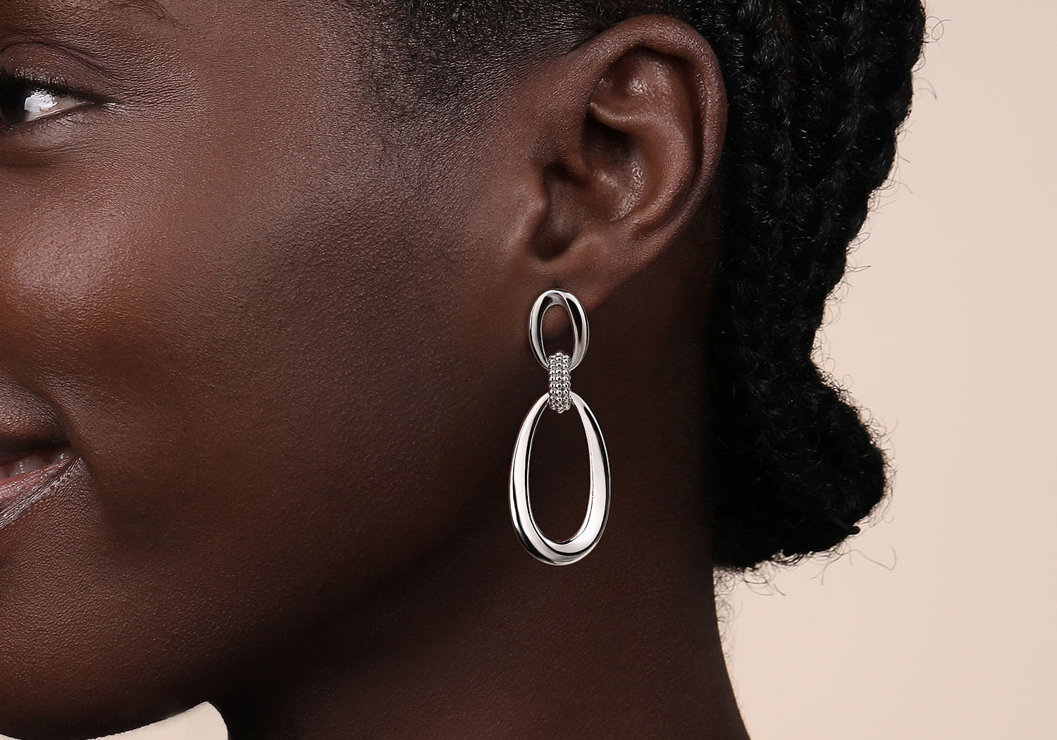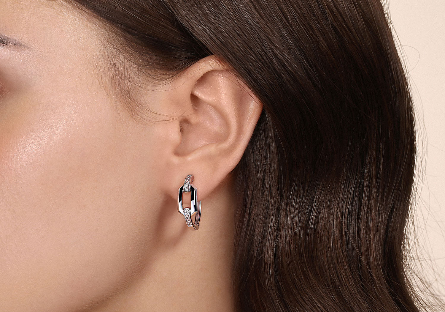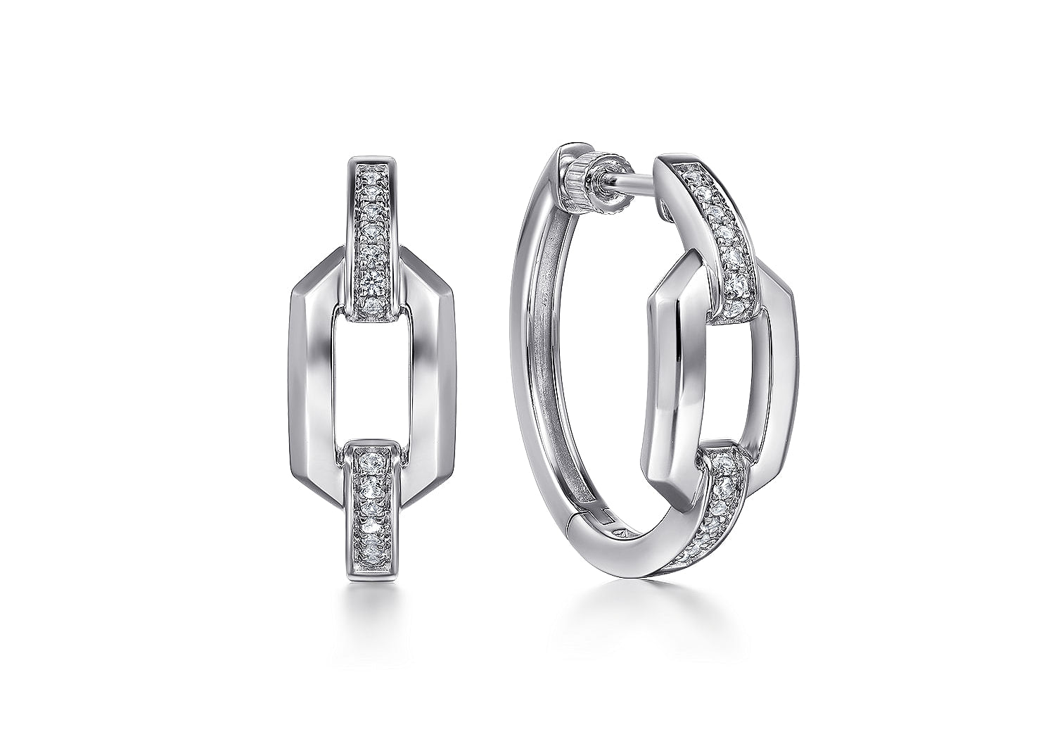 925 Sterling Silver White Sapphire Link Chain Hoop Earrings