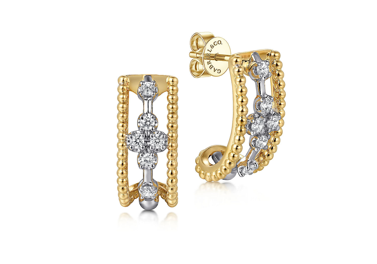 14K White and Yellow Gold Bujukan Diamond J Earrings