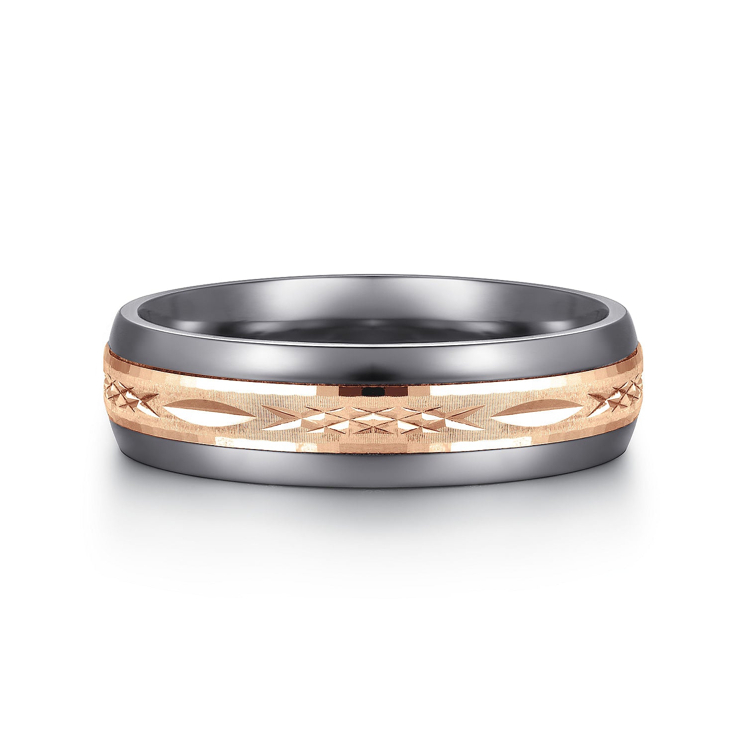 Mens Alternative 6mm Beveled Tantalum and 14K Rose Gold Band
