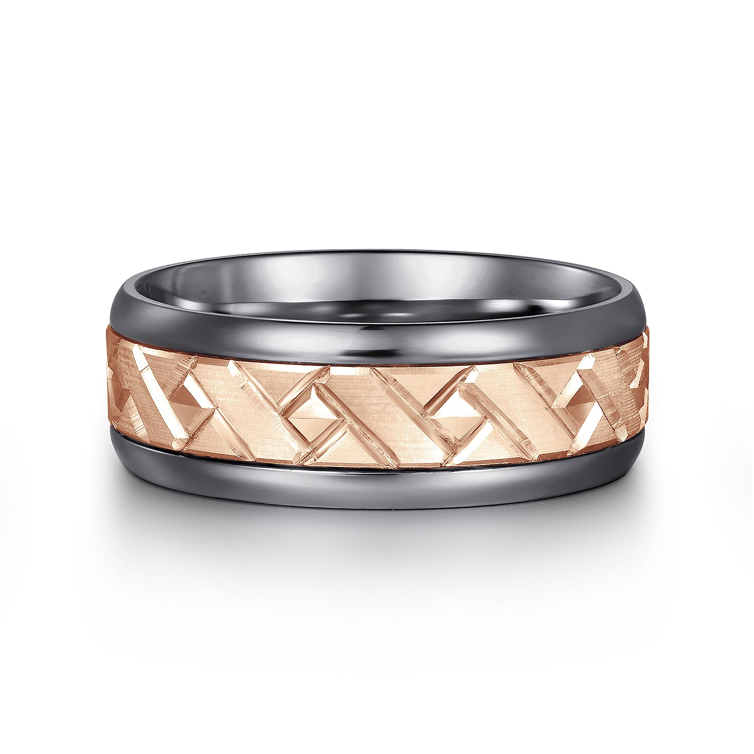 Mens Alternative 8mm Beveled Tantalum and 14K Rose Gold Band