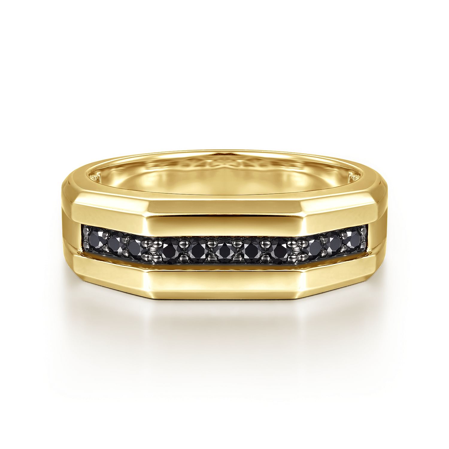 14K Yellow Gold Ring with Black Diamond Inlay in High Polished Finish