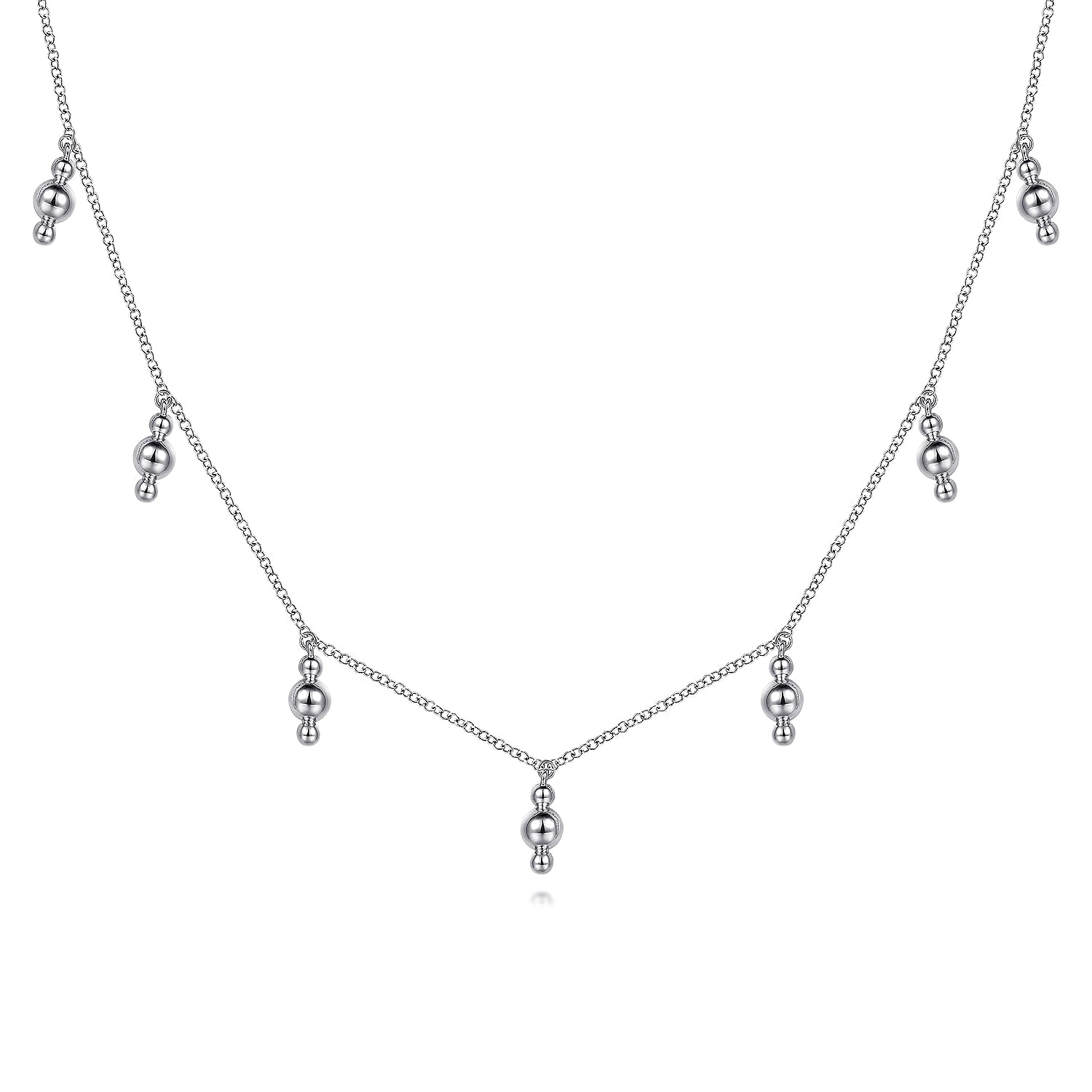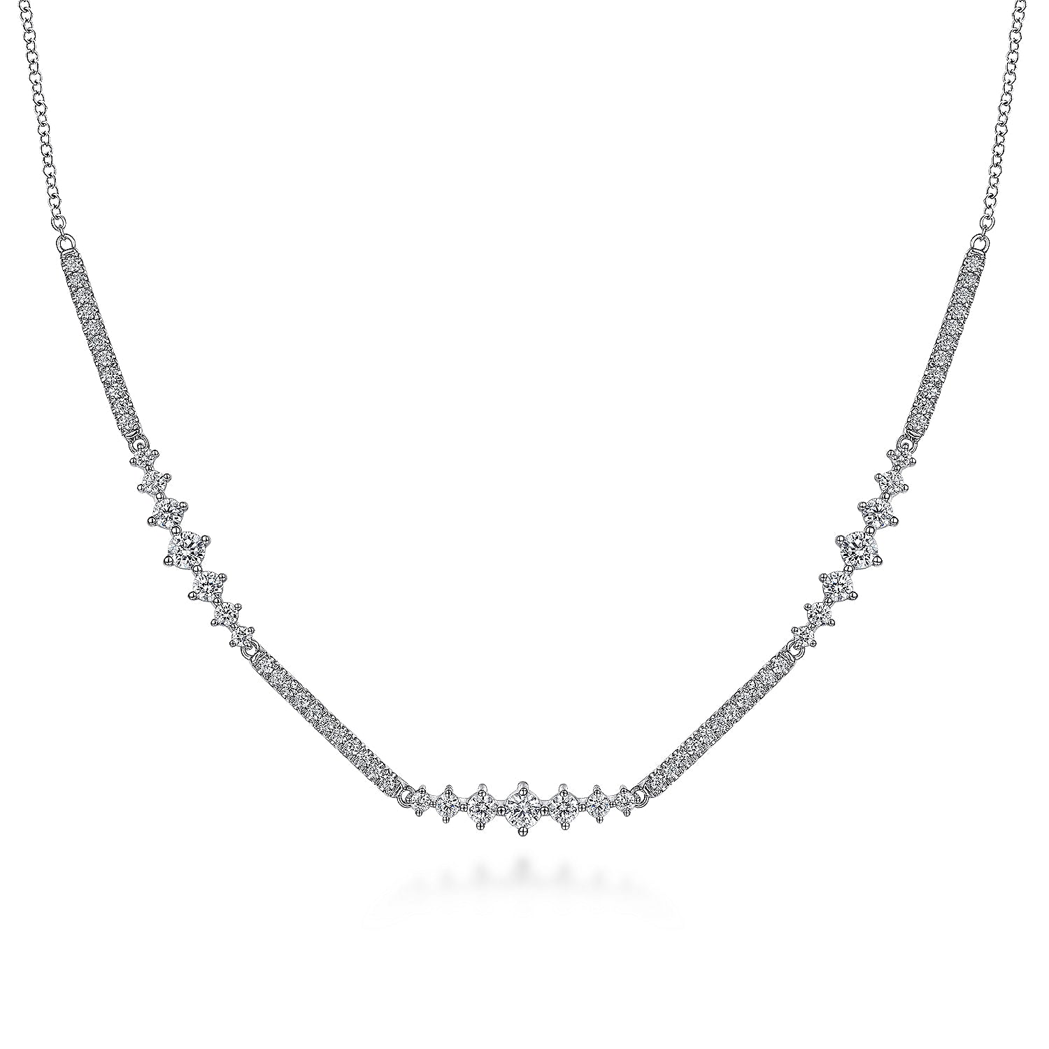 14K White Gold Graduating Vertical Diamond Bar Necklace