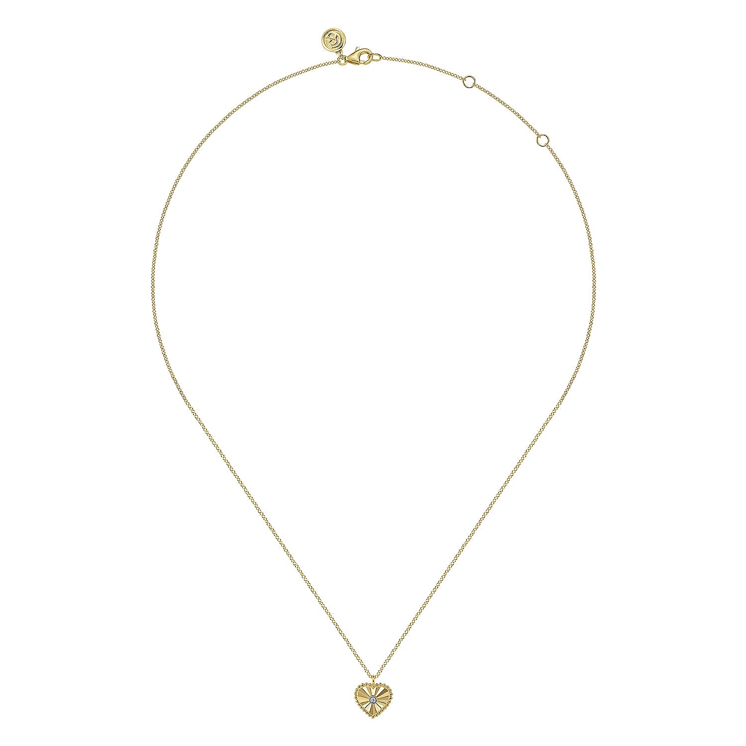 14K White And Yellow Gold Diamond And Heart Pendant Necklace