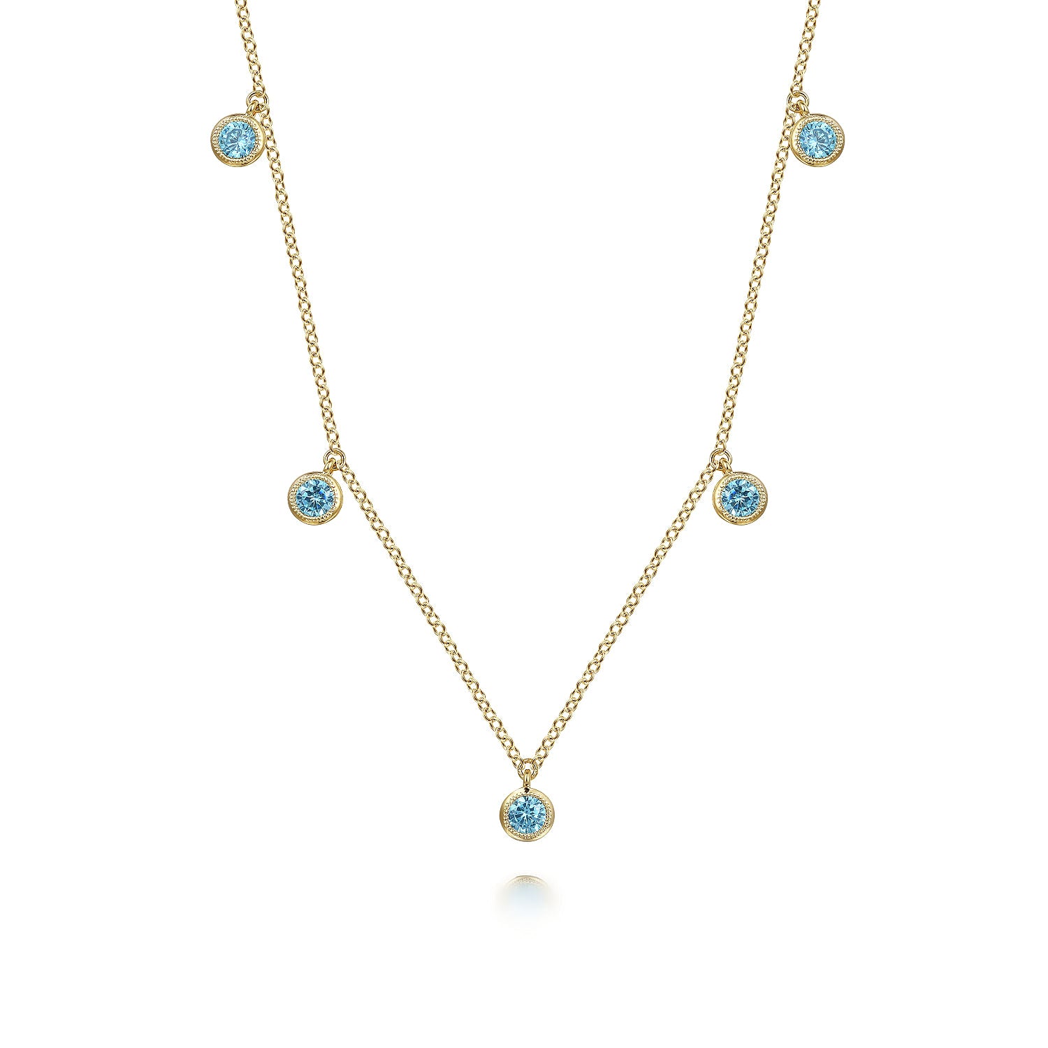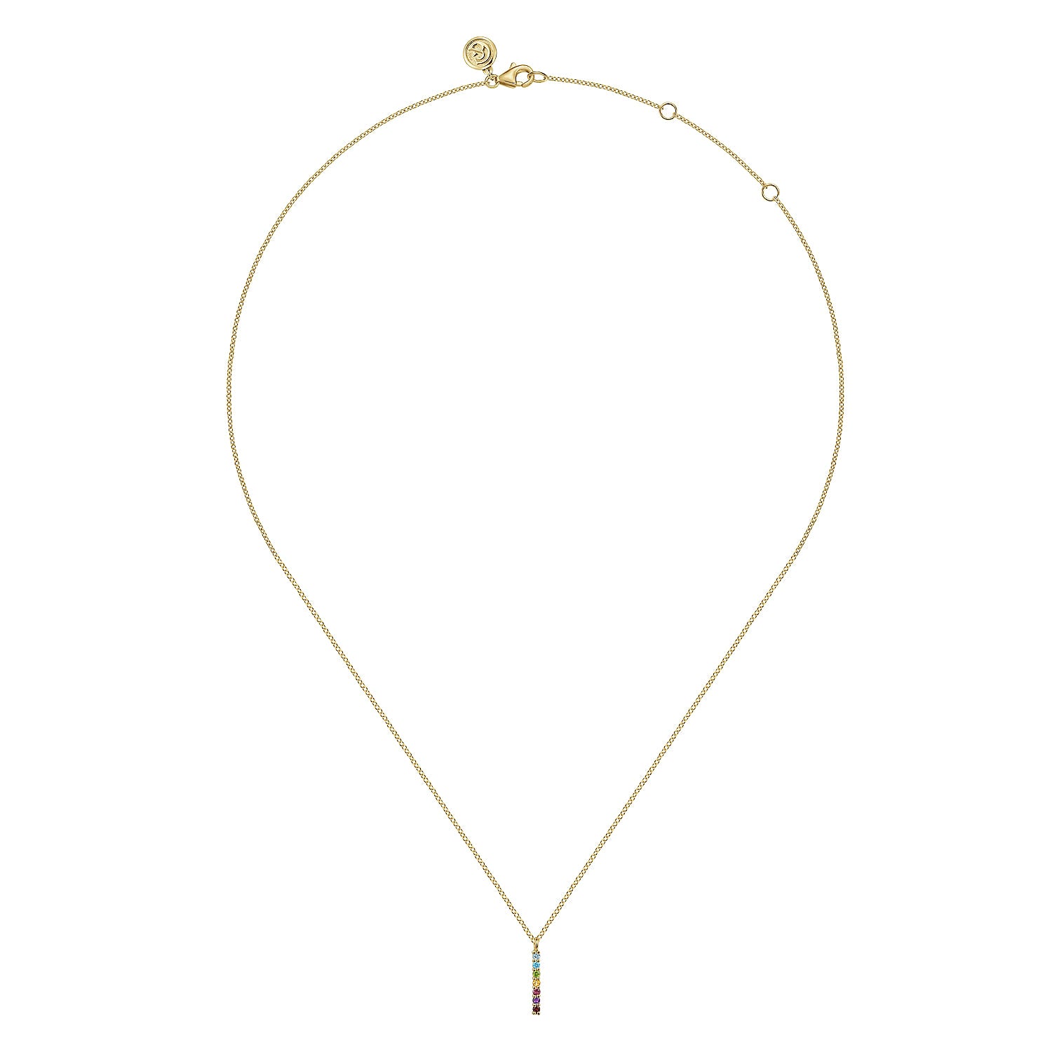 14K Yellow Gold Rainbow Color Stone Bar Necklace