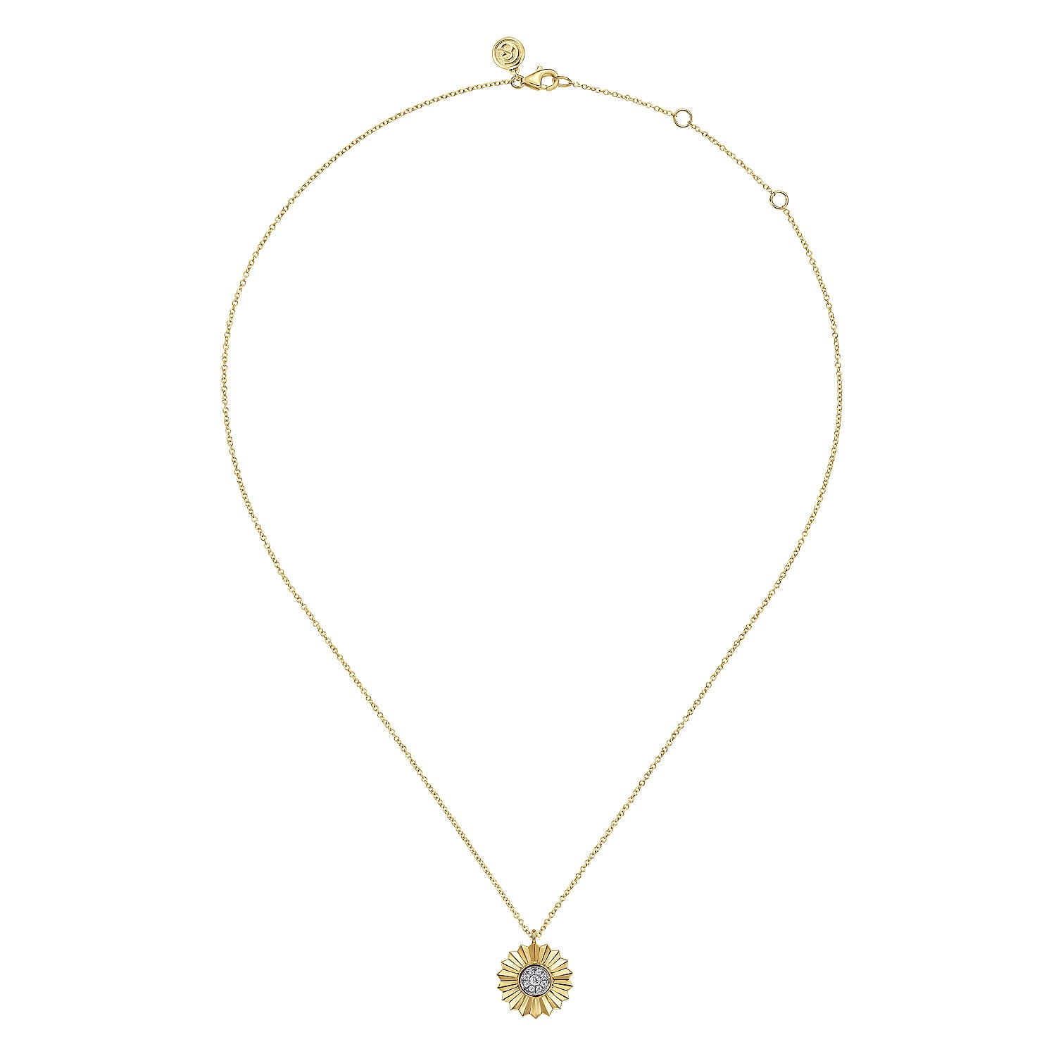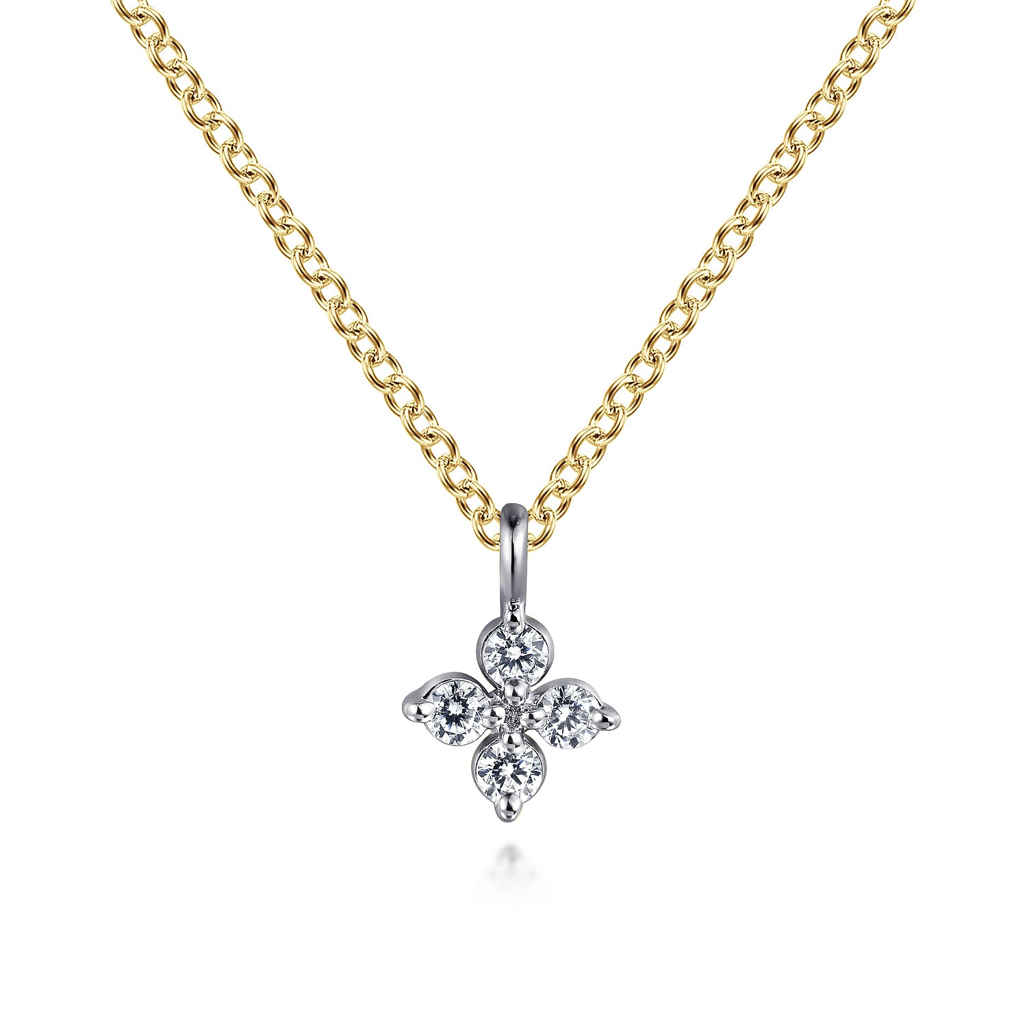 14K Yellow & White Gold Diamond Flower Shape Pendant Necklace