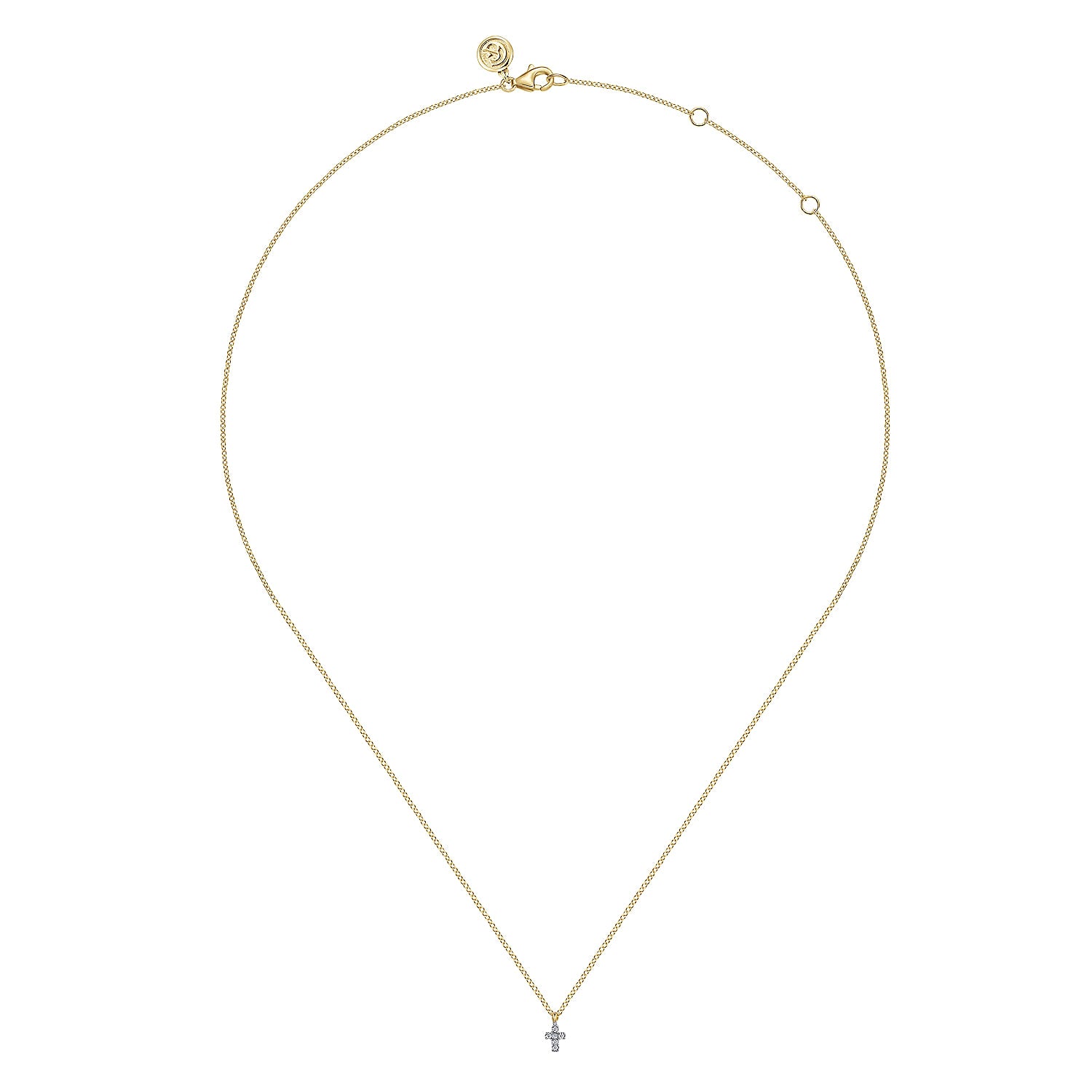 14K Yellow and White Gold Diamond Cross Pendant Necklace
