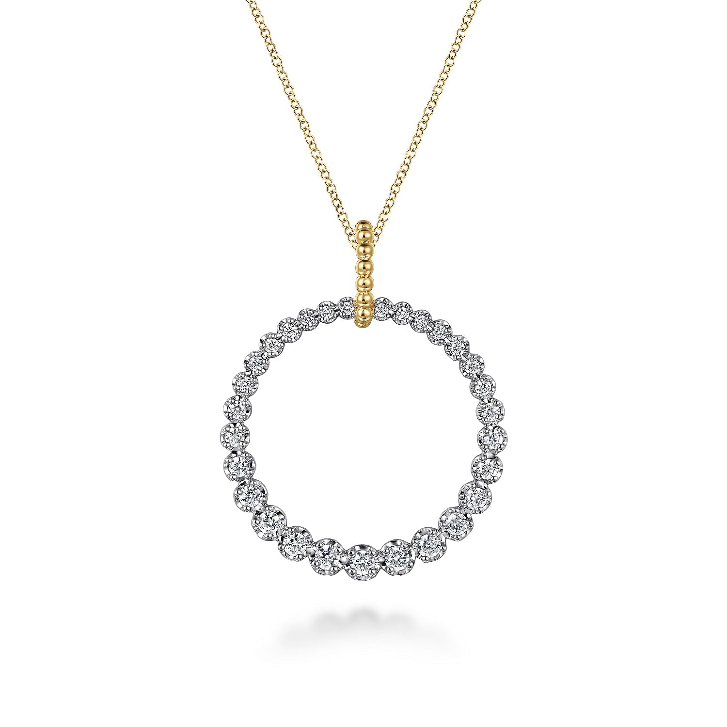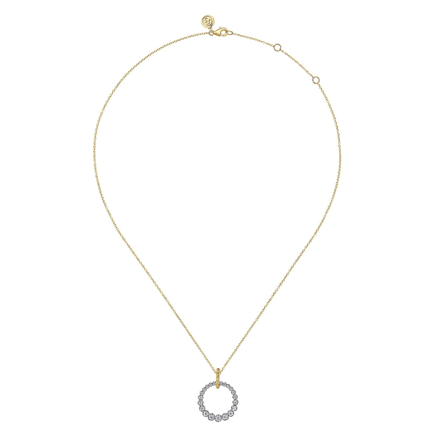 14K White and Yellow Gold Diamond Cut Pendant Necklace